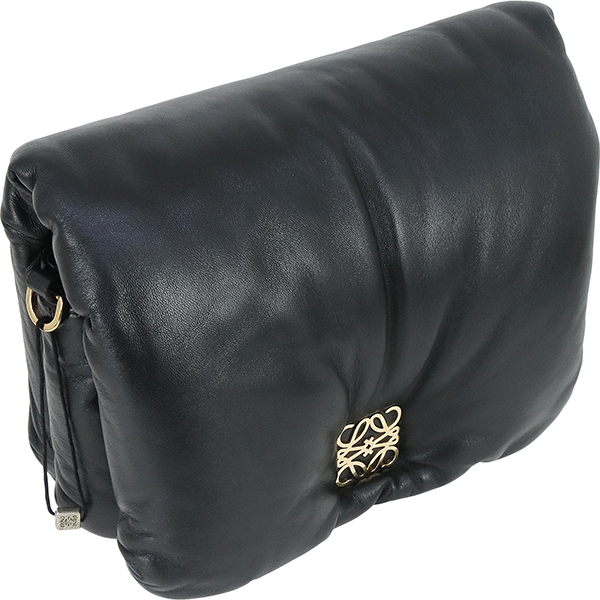 | スタッフコメント | ふわっとした手触りとフォルムが特徴的なパファーゴヤバックが入荷しました。 センターのアナグラムのプレートにユニークなデザインのチェーンがポイントでございます。 ロエベならではの質感やデザインを楽しめるバッグとなっております。  |