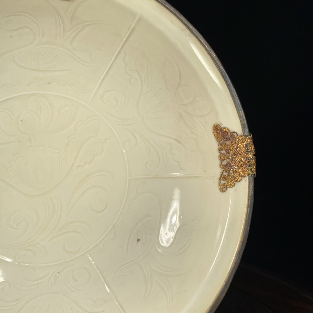 【超珍館蔵】宋 古陶瓷品 定窯 つねる絲 包口 花卉紋 供盤 陶藝 古賞物 古董品 古美術品 時代物 旧家蔵出 稀少珍蔵品