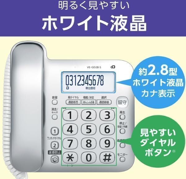 【新製品モデル・新品未開封品・メーカー保証付】●パナソニック『迷惑防止機能搭載』デジタルコードレス電話機【VE-GD28DL-S】(子機1台付)