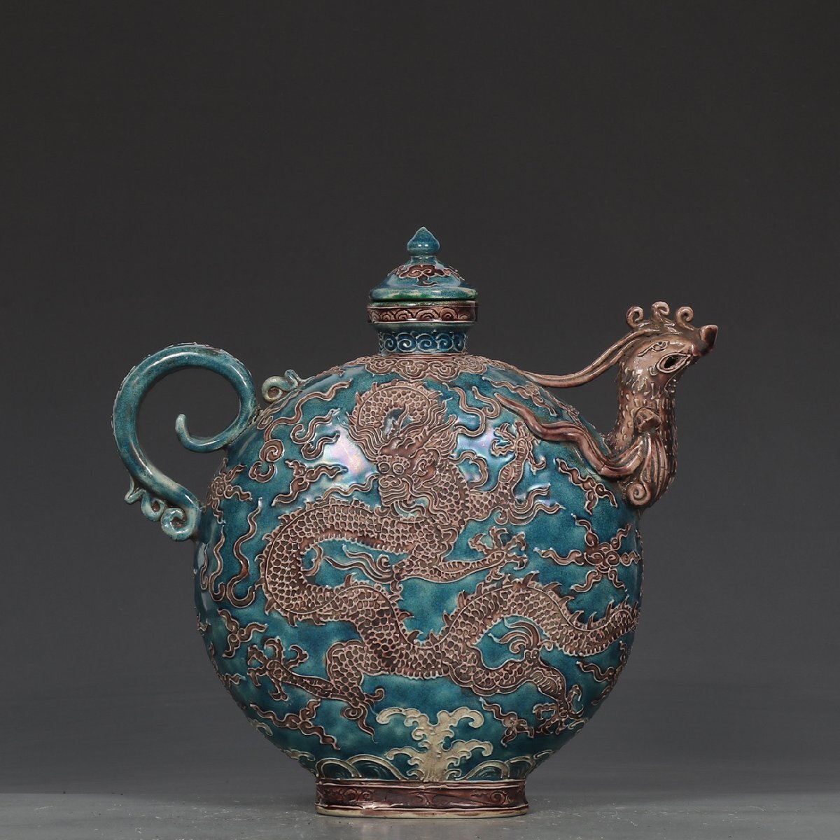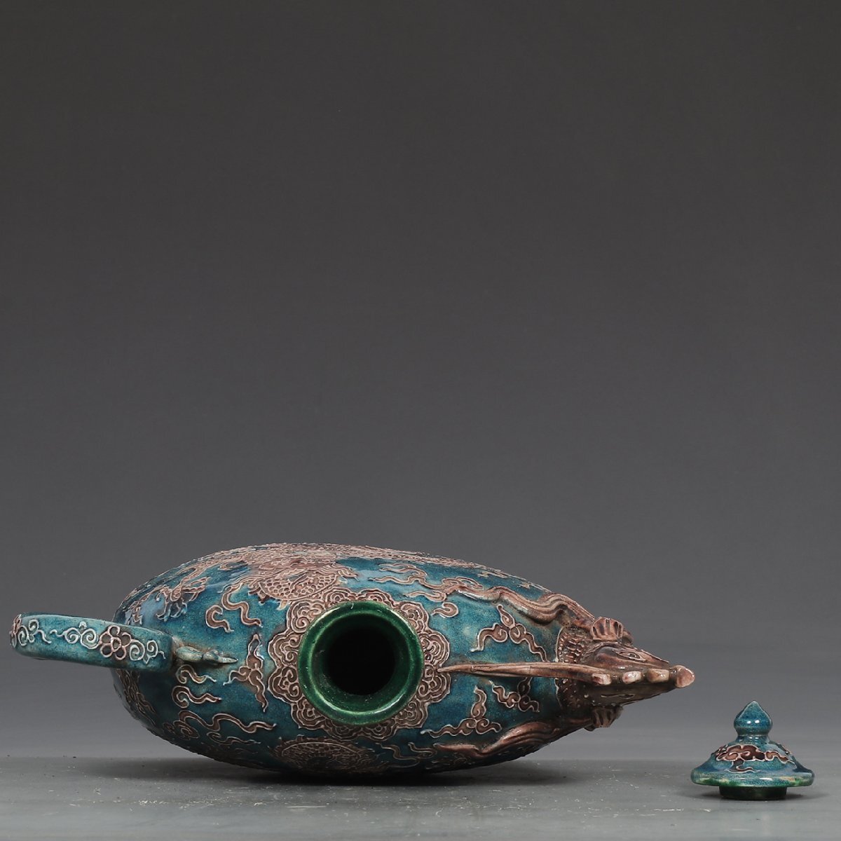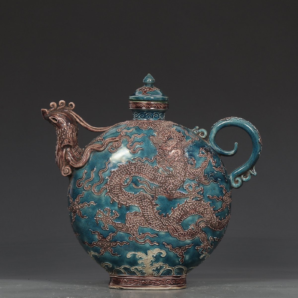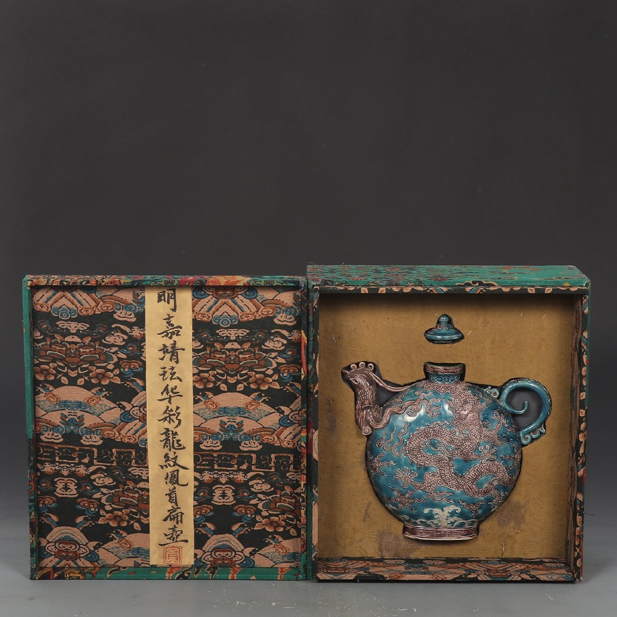【安】明時代 大明嘉靖年製 琺華彩龍紋鳳首扁壺 共箱 唐瓷 染付 古陶瓷 中国古美術 古董品 268 サイズ(約寸) |