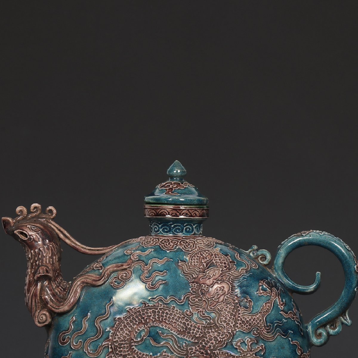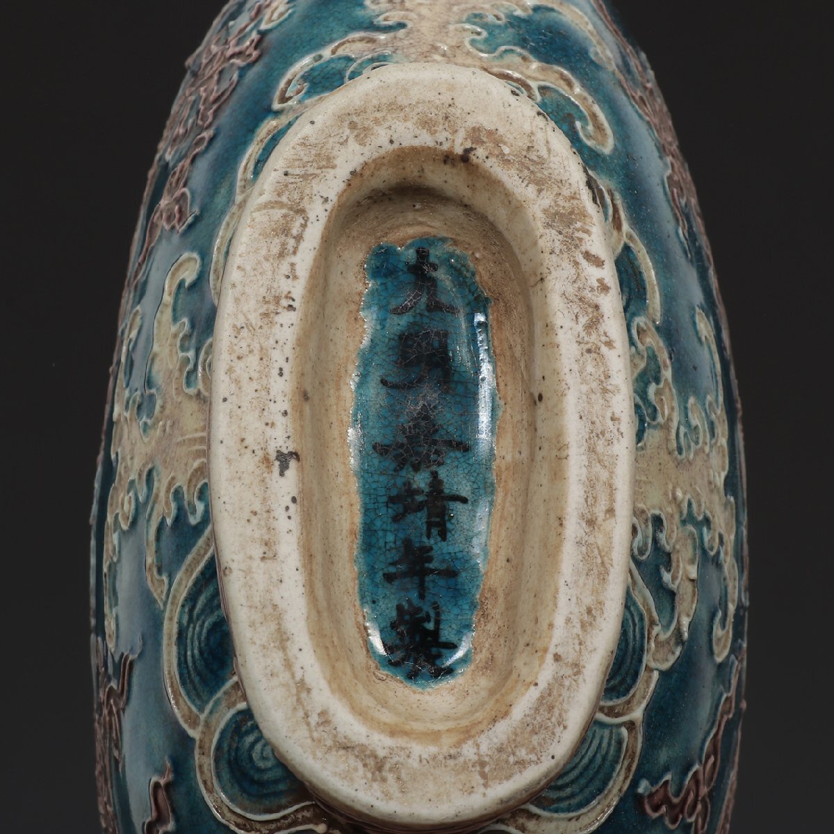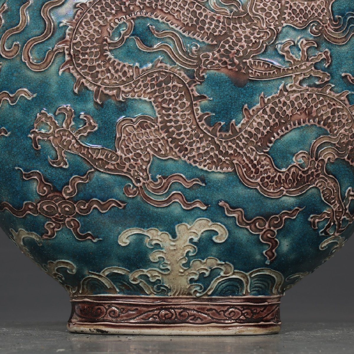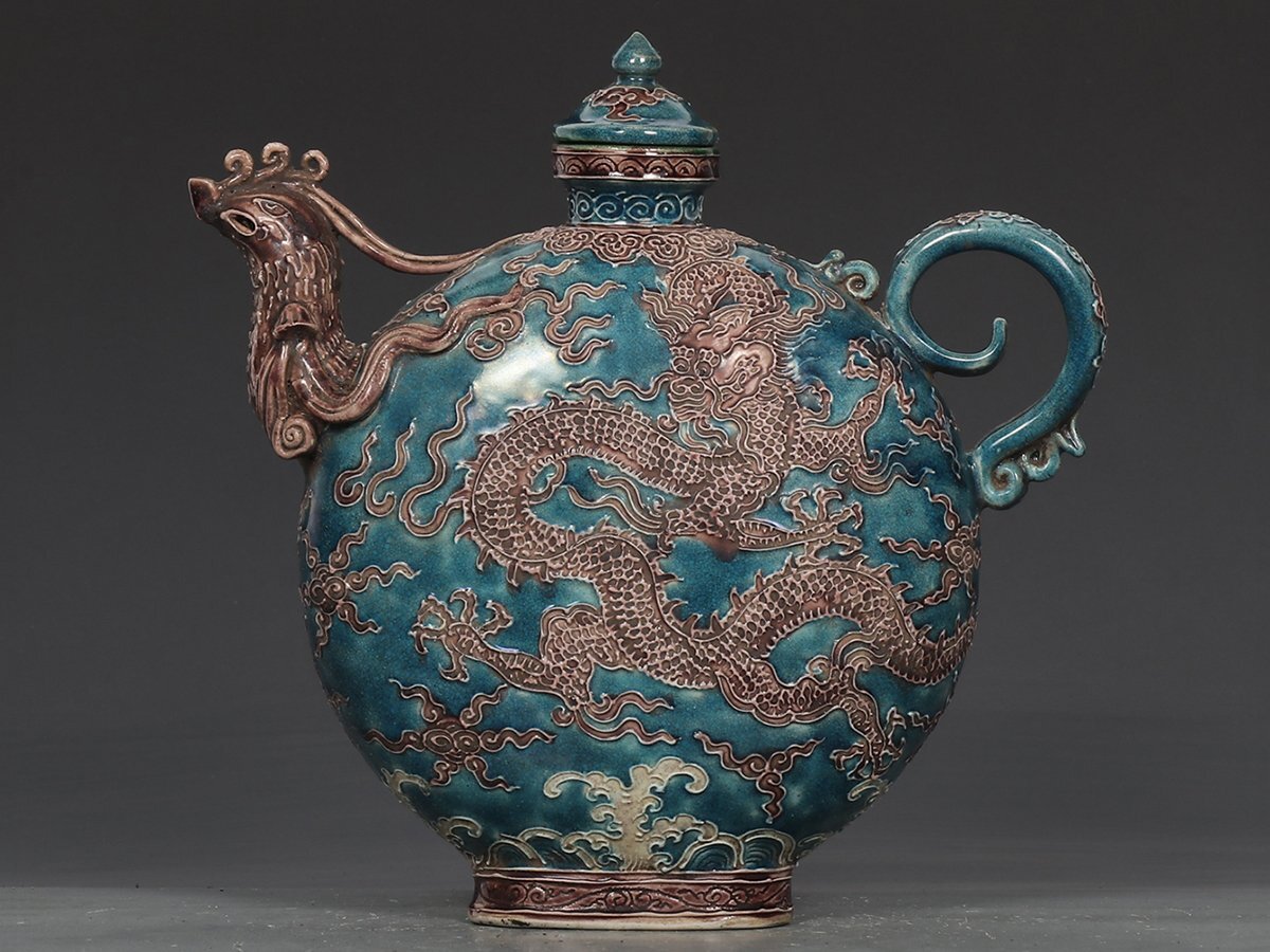【安】明時代 大明嘉靖年製 琺華彩龍紋鳳首扁壺 共箱 唐瓷 染付 古陶瓷 中国古美術 古董品 268 サイズ(約寸) |