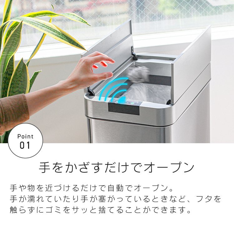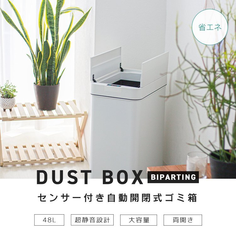 センサー式 全自動自動開閉ゴミ箱 大容量45L 両開き 非接触 フタ付き ダストボックス 電池式 スチール リビング キッチン 家庭用