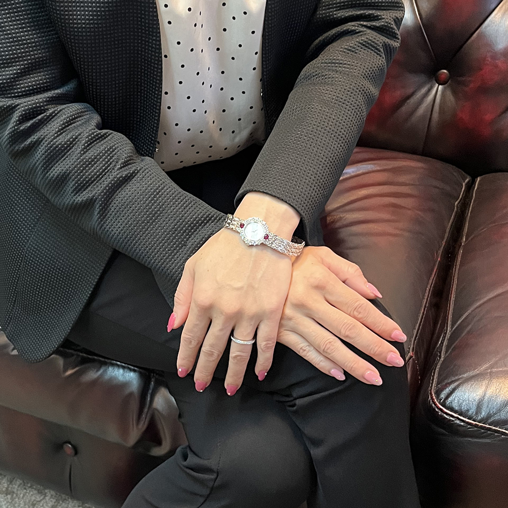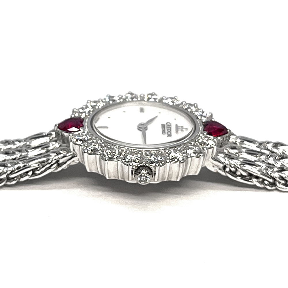 | 素 材 | 【ケース】ホワイトゴールド/純正ダイヤモンド/純正ルビー 【ベルト】ホワイトゴールド | ||