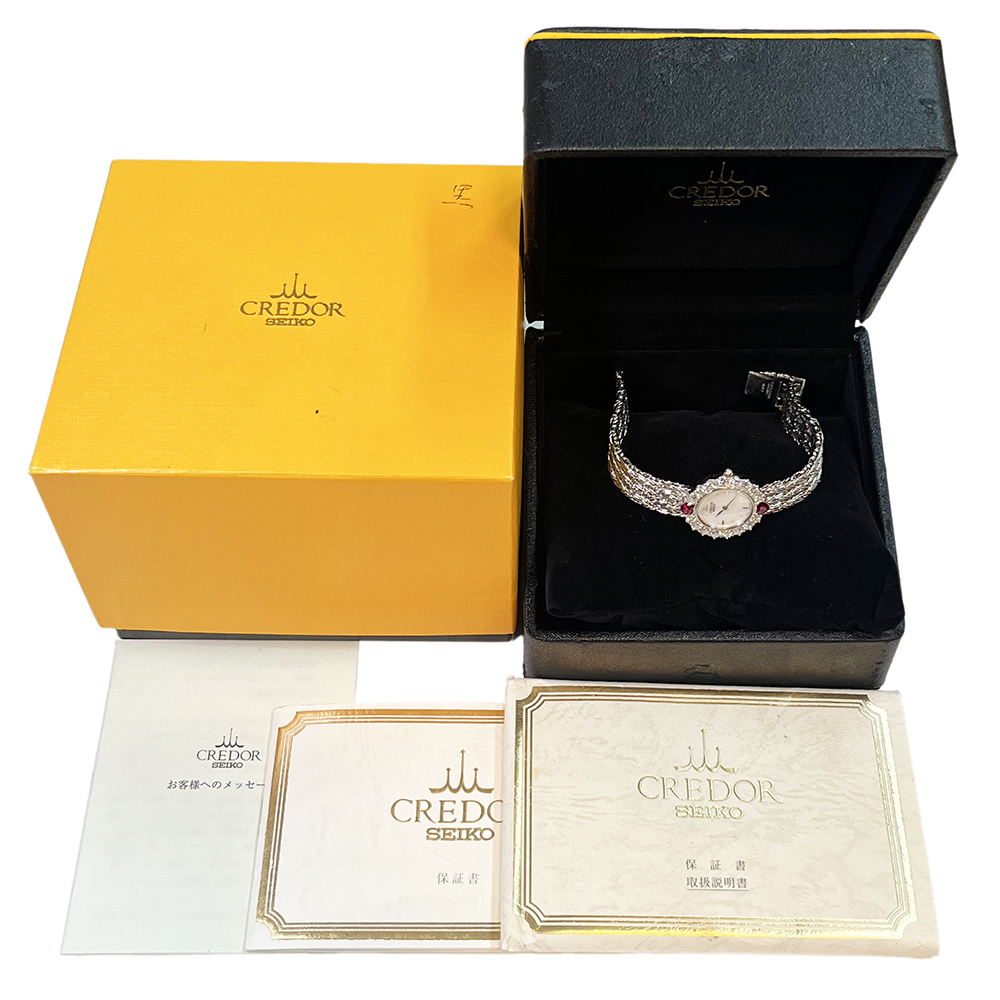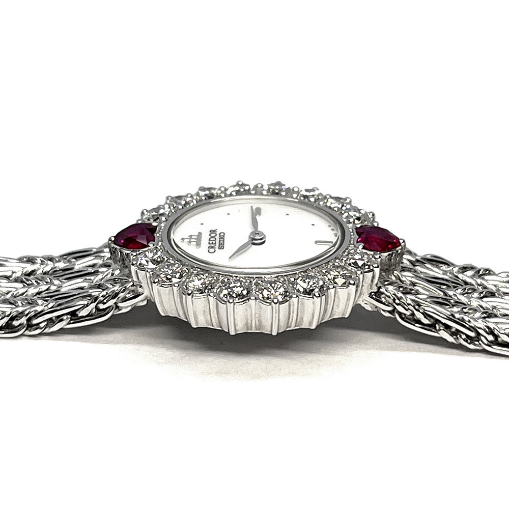 | 商品名 | セイコー クレドール GTTE809 WG無垢 純正ダイヤ/ルビー ギャラ付 レディース クォーツ 時計 | ||