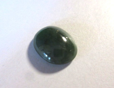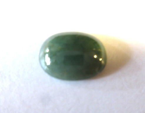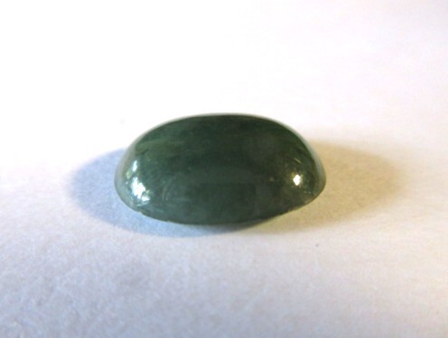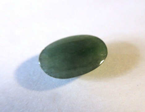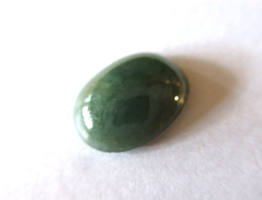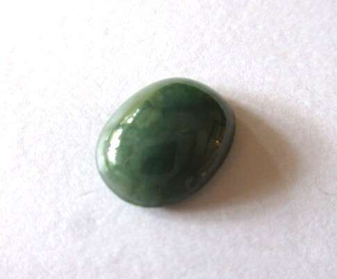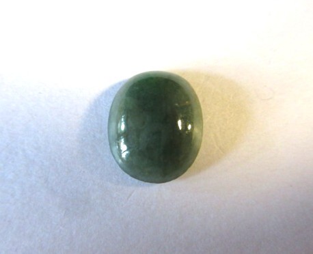 落ち着いたグリーンの翡翠です。透明感がないようですが、裏からライトをあてますと、透過性のあるグリーンの石なのがわかります。非加熱。