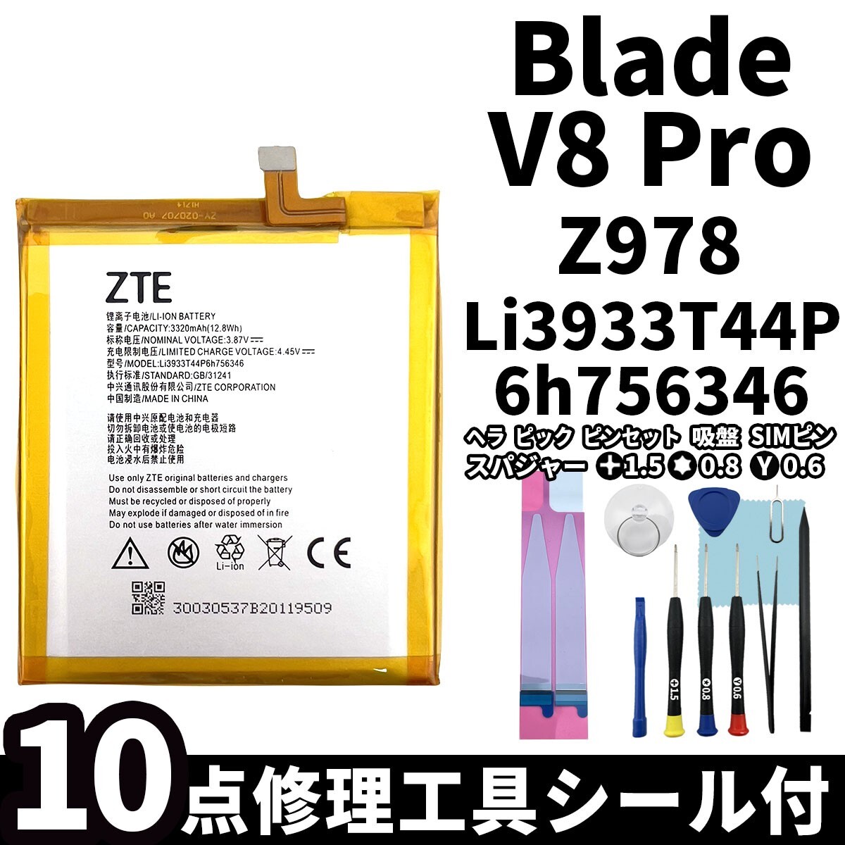 ZTE Blade V8 Pro バッテリー Li3933T44P6h756346 Z978専用 ・バッテリー本体 ・両面テープ ・修理工具セット ※商品画像はイメージとなります。 |