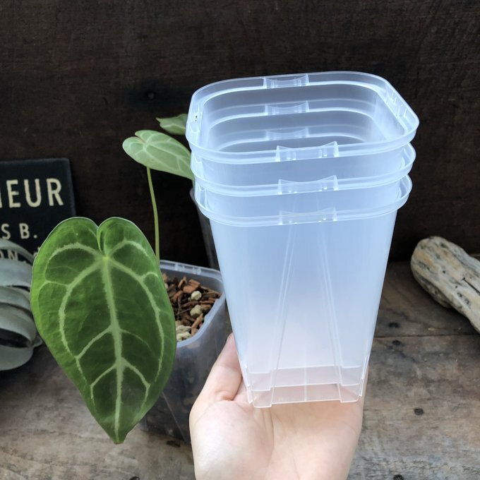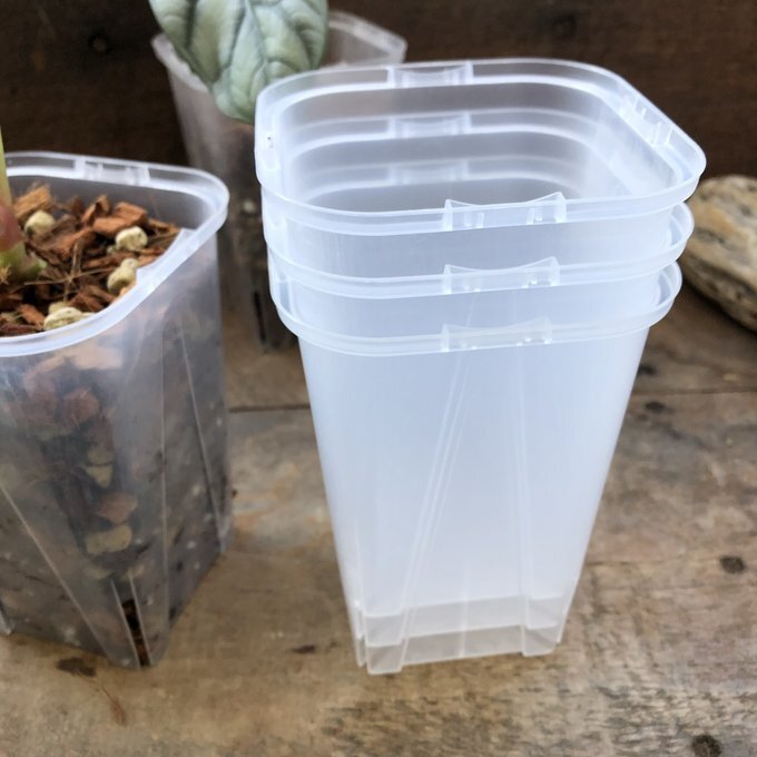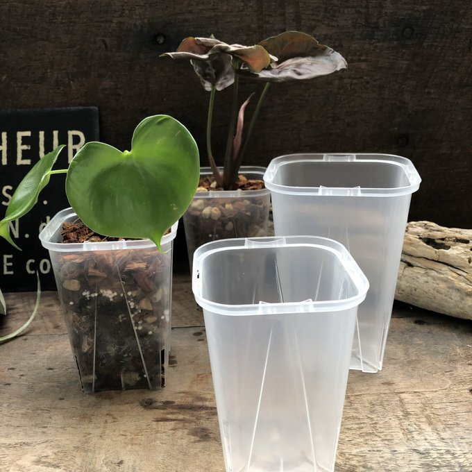 ネガミエルの3.5号各鉢の3個セットです。 人気の兼弥スリット鉢のシースルーバージョン 株の生育を第一に考える園芸愛好家の皆様に好評を頂いている「スリット鉢」 これと同じ形の色違い、半透明タイプが登場しました! ほんのり土や根鉢が透けて見え、おしゃれ感があるので屋外はもちろん、室内栽培にも。 根が育つ様子も観察出来て、植物への愛おしさも2倍です! もちろん、「兼弥スリット鉢」と機能は変わらず。 根が回るのを防止し、スリットからの通気や排水の絶妙なバランスで、 鉢の中の土を余すことなく使って生育できるように まるで大地に生えているようなのびのびと健康的な成育をサポートします。 この透明鉢は、ポトスの生産者さんのアイデアで作られたもので 「ネガミエル」と命名されました! [サイズ] 11.0x8.4XH13.0Mm [容量] 約0.68L [材質] ポリプロピレン [数量] 3個