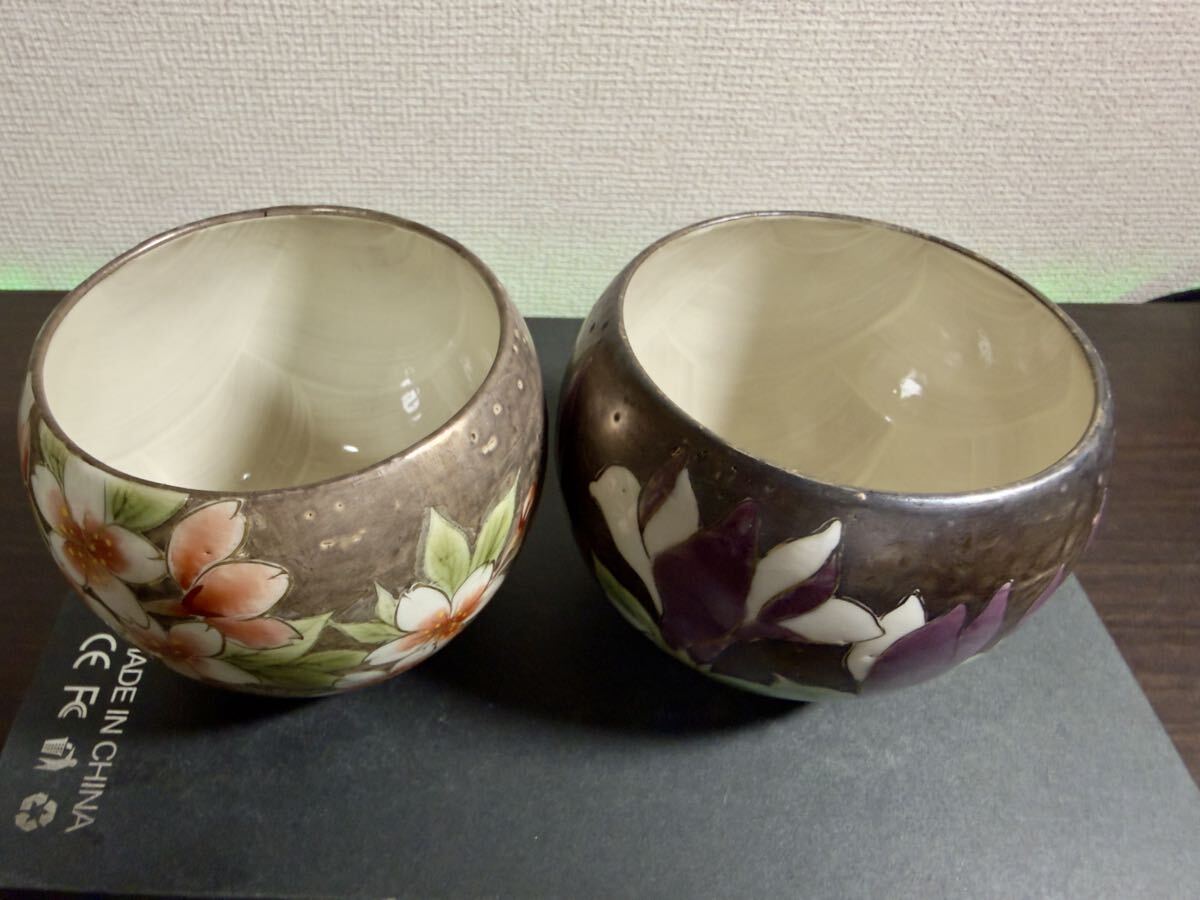 1円から〜 京焼・清水焼 土渕陶庵 陶あん 銀彩 在銘 手描 色絵付け 銀 ぐい呑 丼 鉢 茶碗 茶器 茶道具 美術陶芸 コレクション