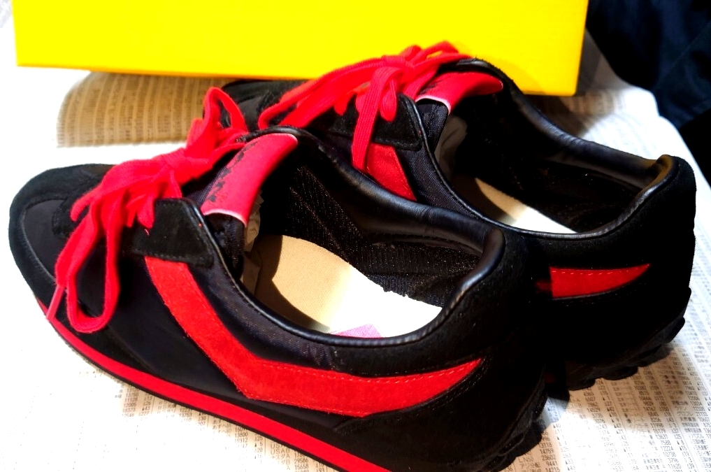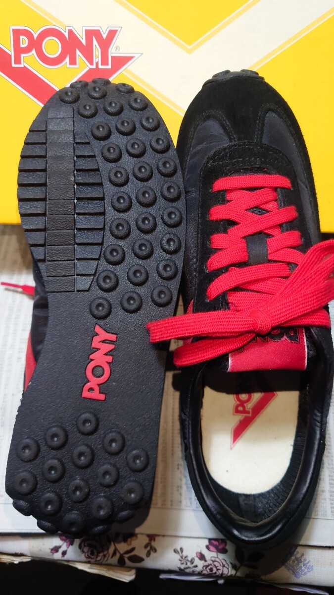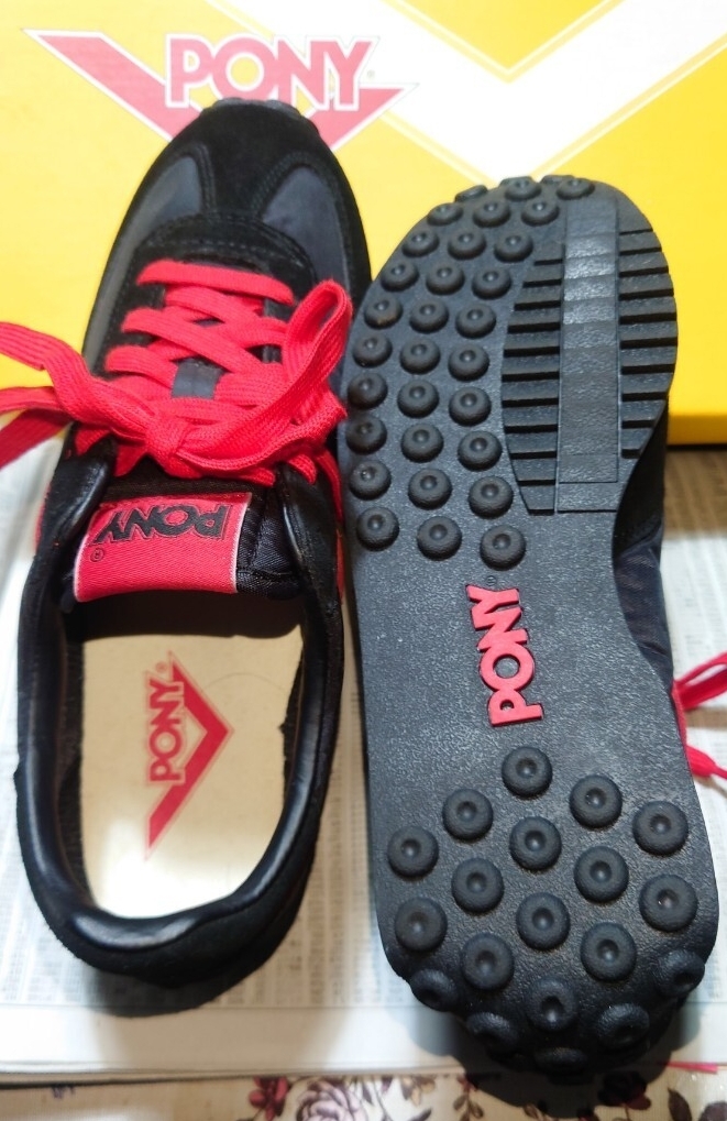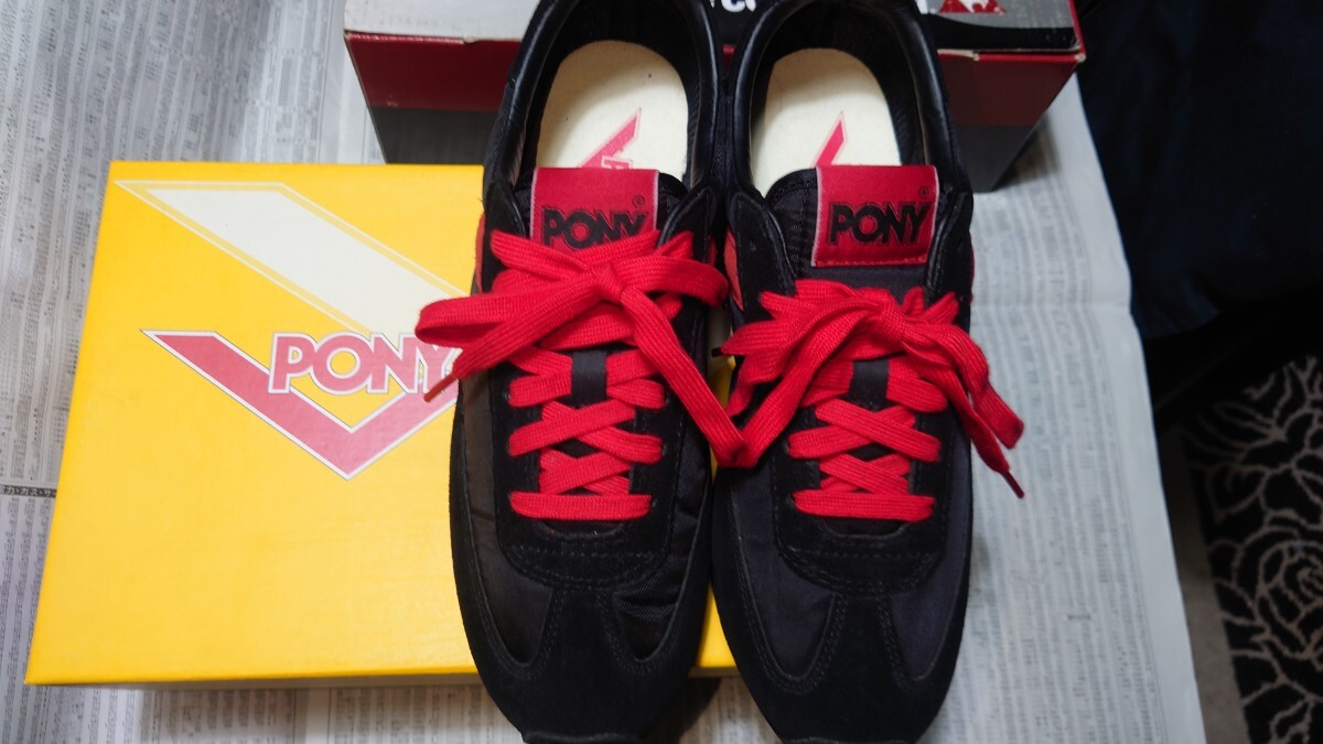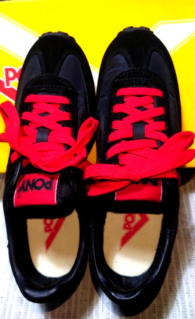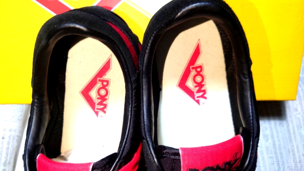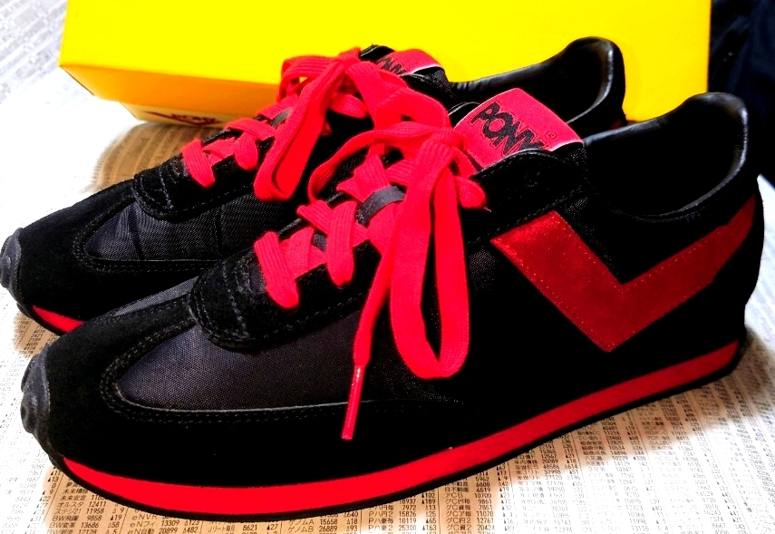 ポニーのローカットスニーカーでカラーはブラック×レットです。未使用です。箱付きです。箱は別モデルの箱です!