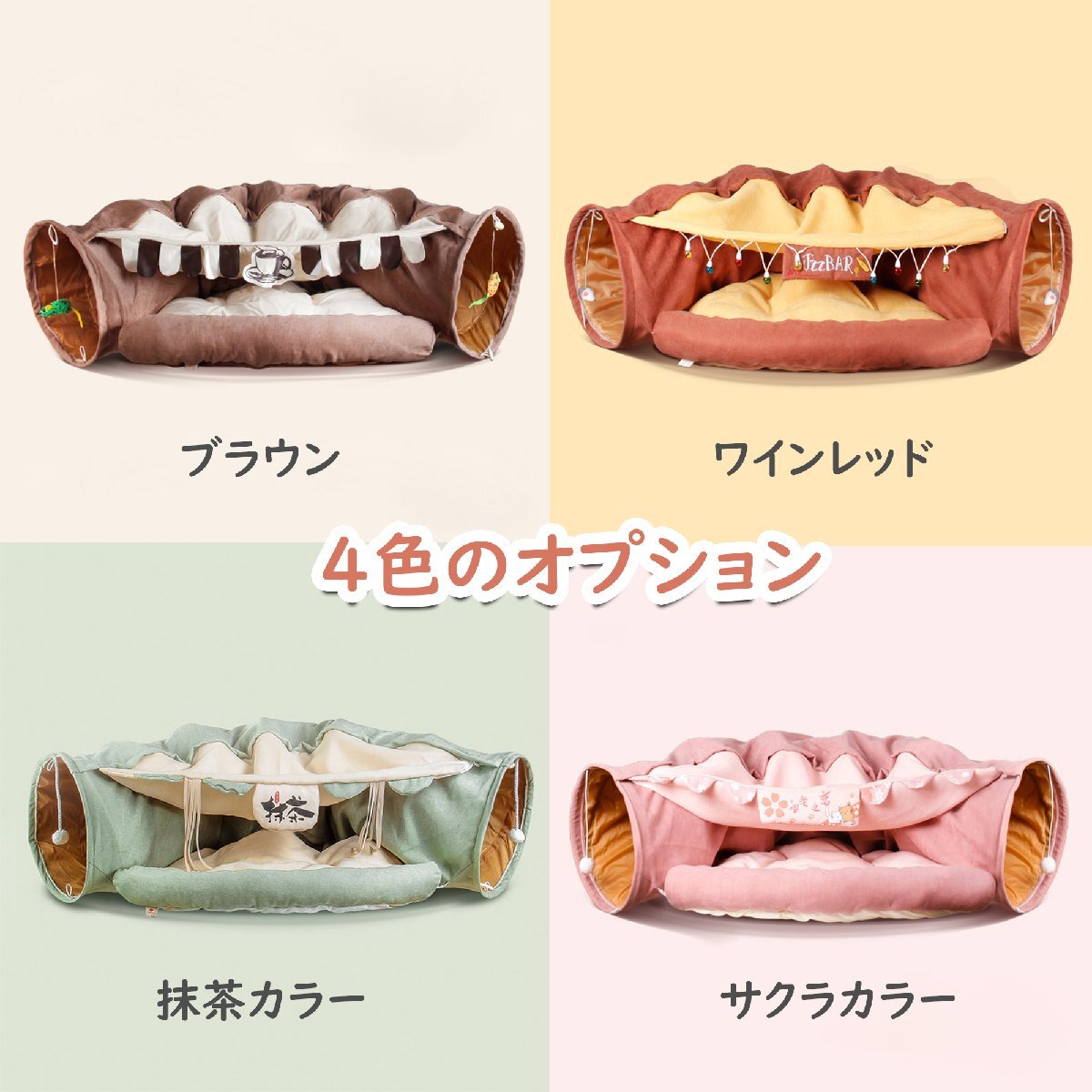 美品登場 猫ハウス ねこ キャットトンネル 猫ベッド ペットハウス 折りたたみ おもちゃ ブラウン 1086ge