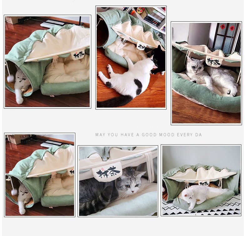 ■オールシーズン対応のトンネル猫の巣、猫砂とトンネルの組み合わせ、デザインとかわいい色が活力を与え、1匹または2匹の猫が遊ぶのに最適です。