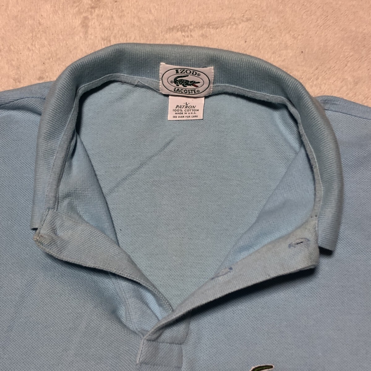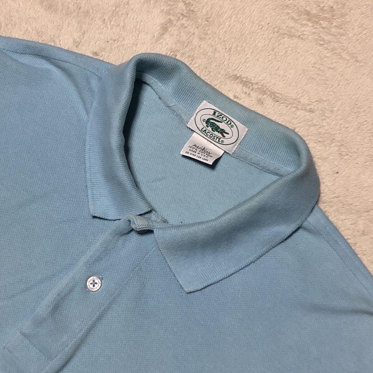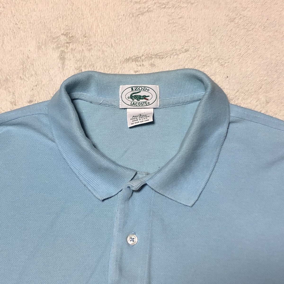 IZOD LACOSTE アイゾッド ラコステ USA製 半袖ポロシャツ 鹿の子 ワニロゴ刺 スカイブルー 人気の大きいサイズ Lサイズ