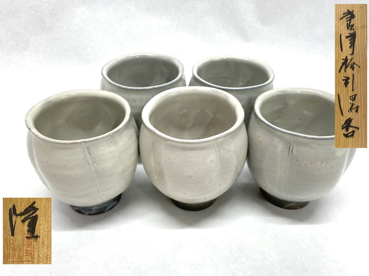 | 【R750】未使用 中里隆造 隆太窯 唐津焼 唐津粉引湯呑 5客揃 セット 茶器 和食器 陶磁器 中里太郎右衛門 栞 共箱付 b | ||