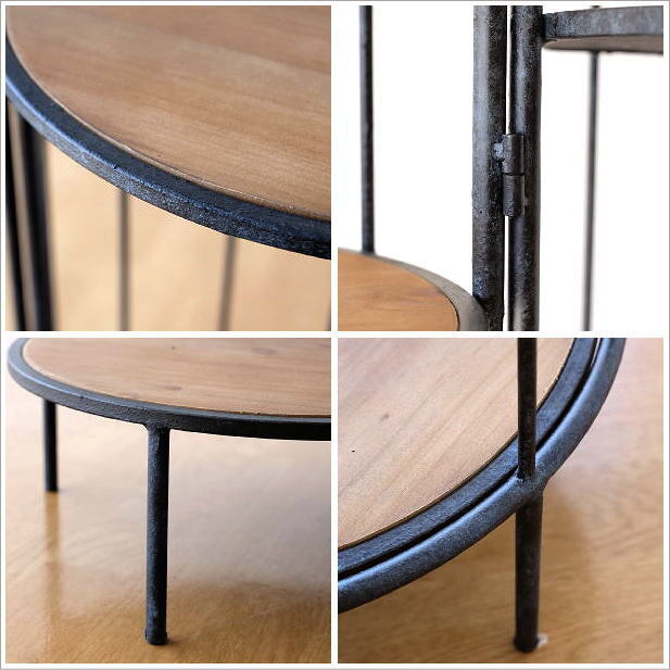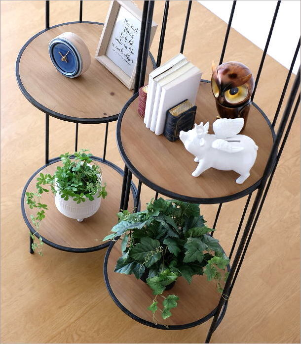 | 左右に連結した円形のシェルフは 高さがあり 広げて間仕切りとしても使える アイアンのシェルフです 左右3枚ずつ棚が付いていて 折りたたむとスッキリと円形の筒状に収まる ユニークなアイアンシェルフ 棚間の空間の高さがあり アイアンのシンプルでストレートなラインがお洒落で ナチュラルなお部屋やインダストリアルなお部屋にも アクセントになりそうです グリーンや置物など飾って 素敵な空間作りを・・・・ 商品名 : アイアンとウッドのフォールドラウンド シェルフ 商品番号 : spc6251 全体のサイズ(cm) : 幅81.5×奥行39.5×高さ161.5 折り畳みサイズ(フレーム) : 幅41×奥行41×高さ161.5 棚板のサイズ : 直径35.5×厚み1 棚空間高さ : 約60 材質 : アイアン MDF 重量 : 約10kg ※お好みの開き具合で設置できます ※木目や節・色合いの違い、塗装ムラや小さな擦り傷、へこみなどのある商品です ※ディスプレイによる色の違いはご了承下さい |