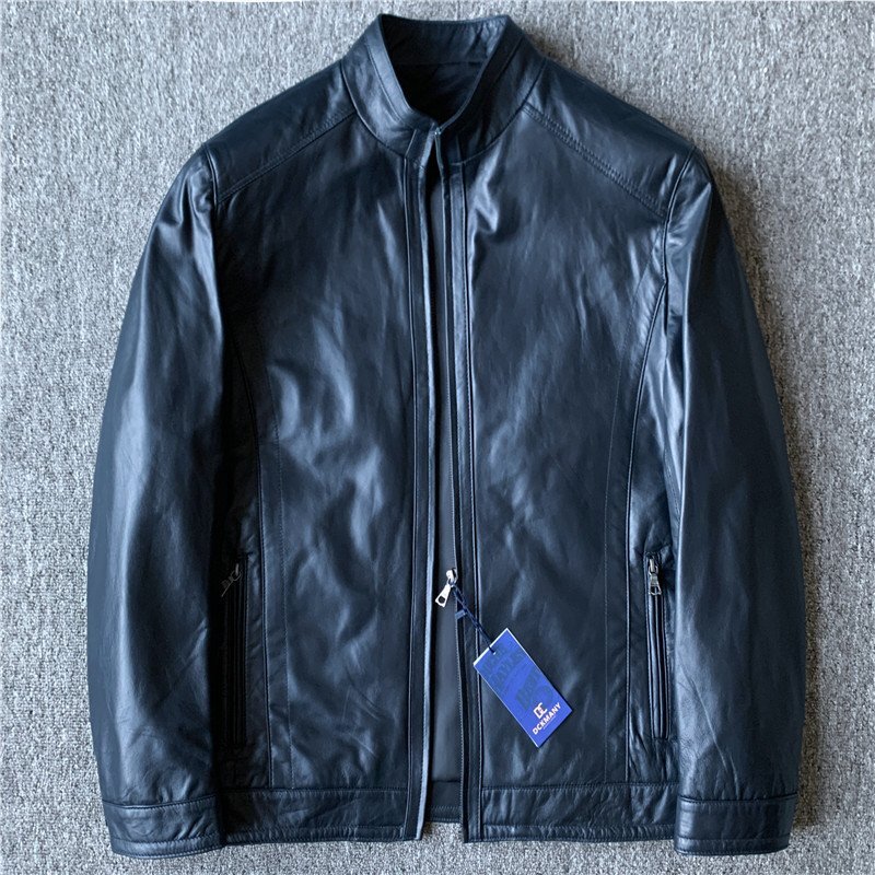 最高級 ラムレザー DCKMANY 新品 上質羊革 イタリアレザー ジャケット 本革 メンズ 革ジャン ライダース ラム ブルゾン/黒青D9602-2XL