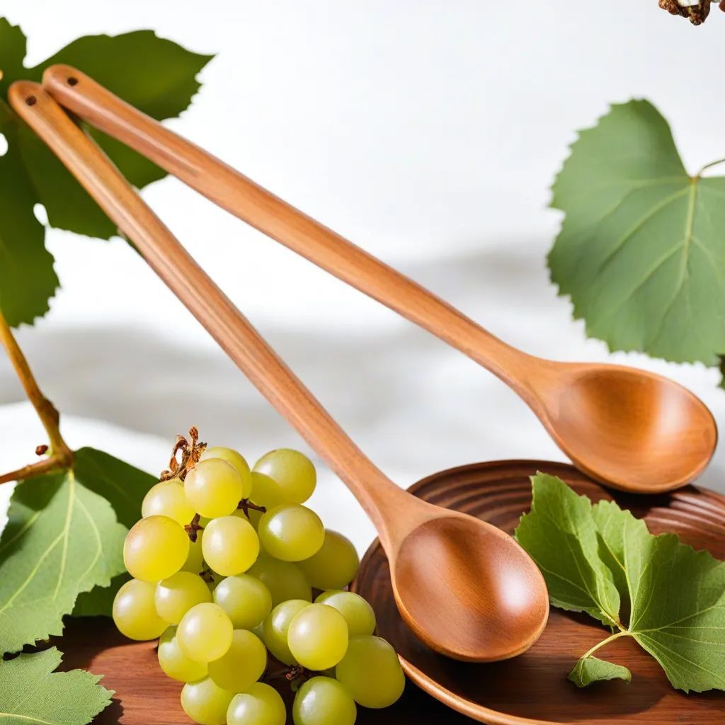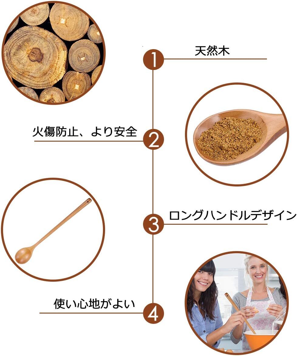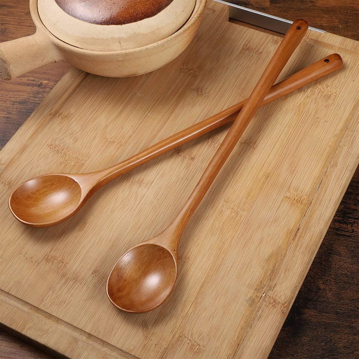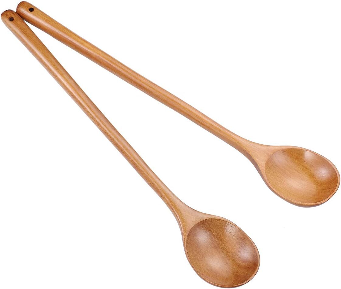 ファッション 木製ロングハンドル調理スプーン 2本セット 高耐熱性 レストラン用