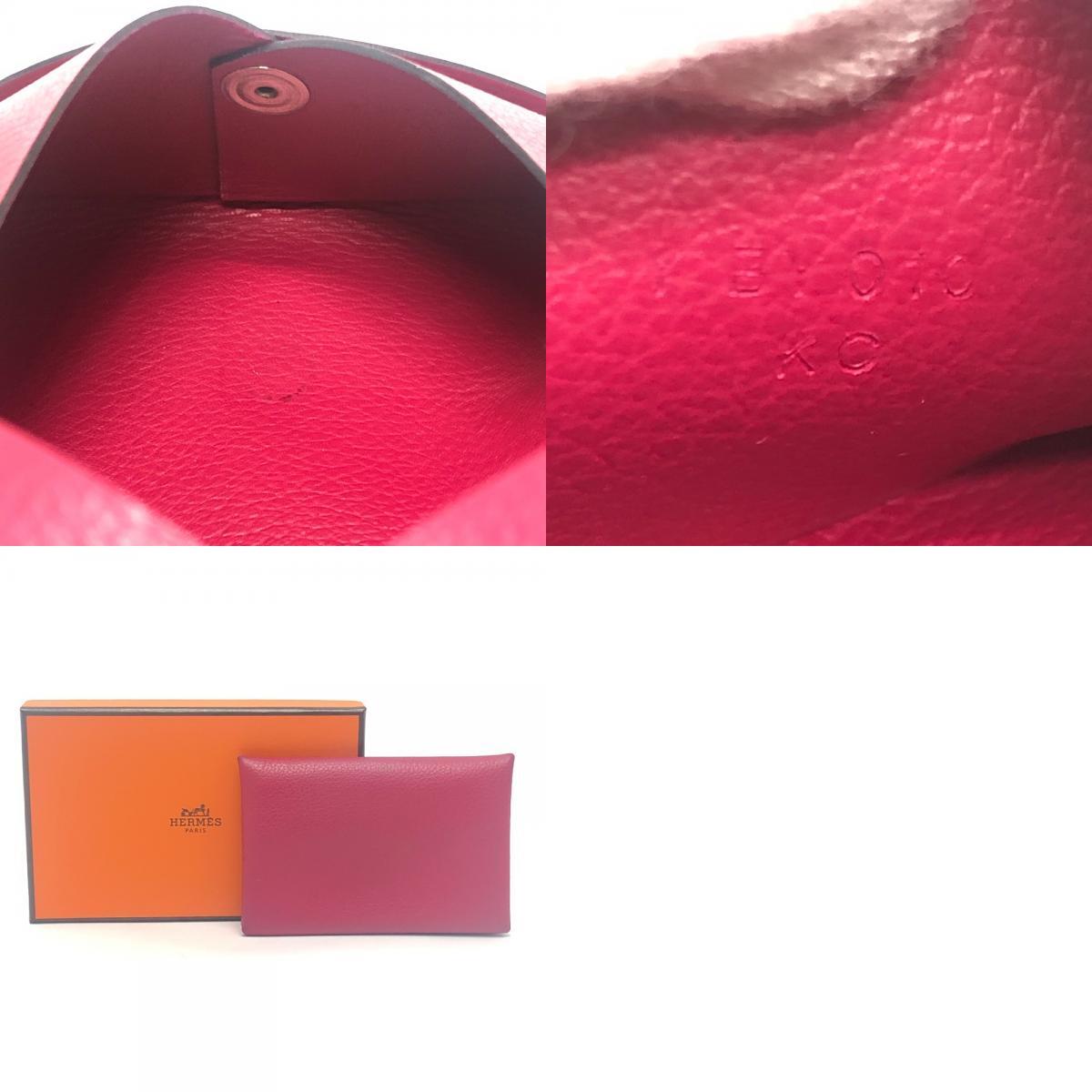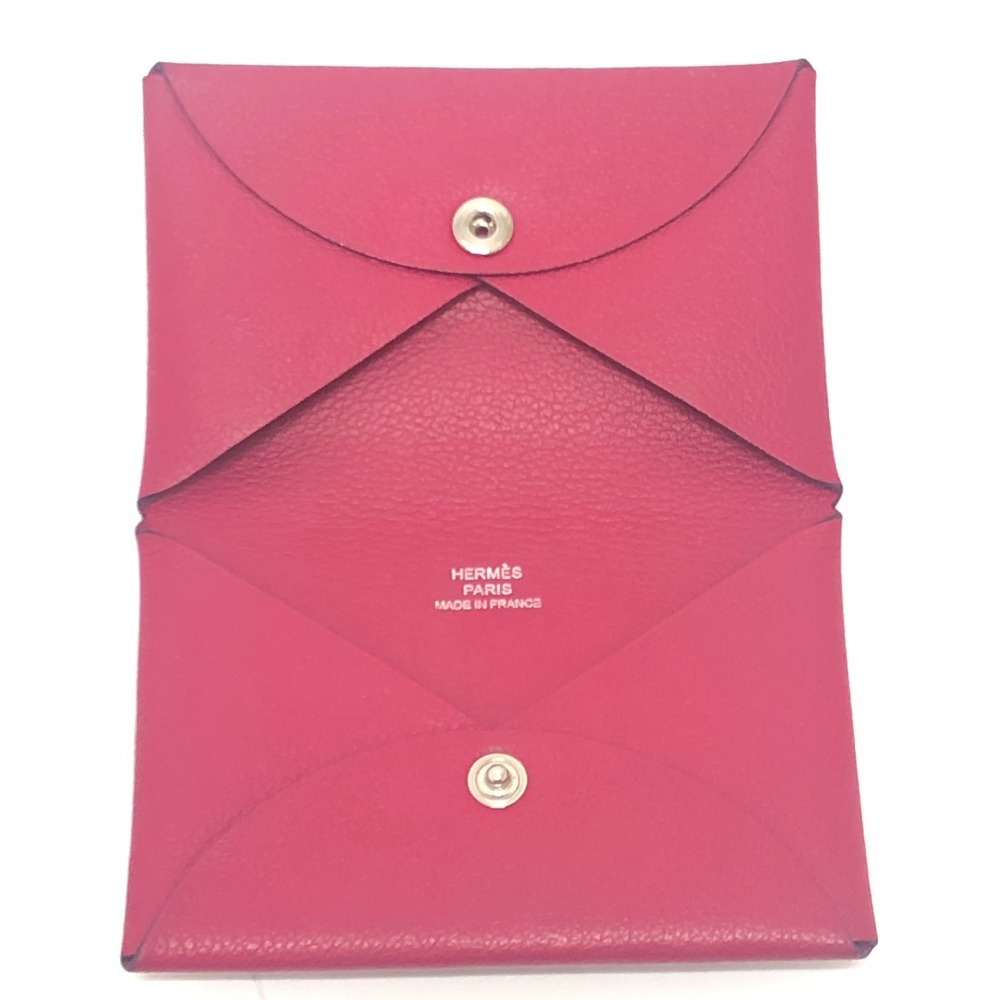 HERMES エルメス カルヴィ 小物 二つ折り カードケース 名刺入れ コインケース シルバー金具ローズ系 ピンク レディース【中古】