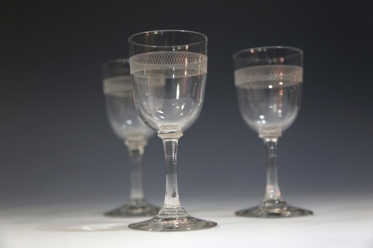 ★★★ アンティーク エッチング 連続輪紋 グラス 5客 ★★★