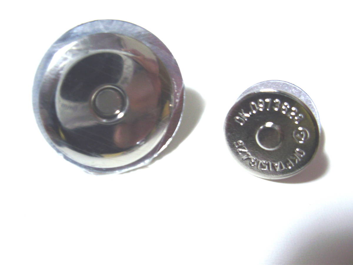 | ●サイズ:たて=マグネット部頭径18mm、バック径=14mm、足=8mm ●セット数=10個 ●重量=6g/1pc ●材質=スチール、他 ●色=ニッケル色 | |||