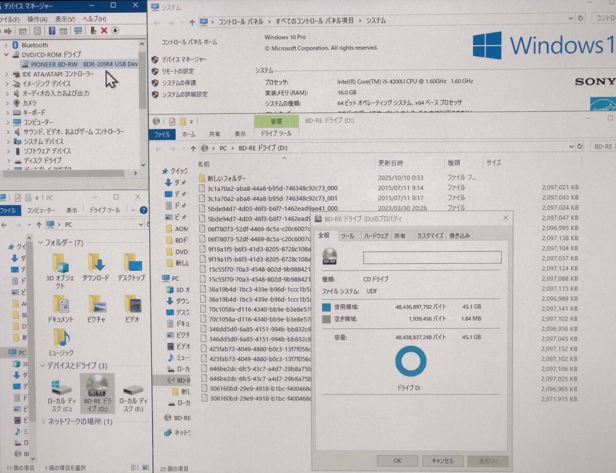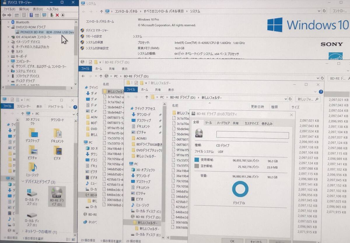 また、市販BD洋画ソフト(BD2層)の再生、BD-REディスク(1層式と2層式と3層式)の読み込みと書き込み・(クイックでない)通常のフォーマットなどの検証もOKです。