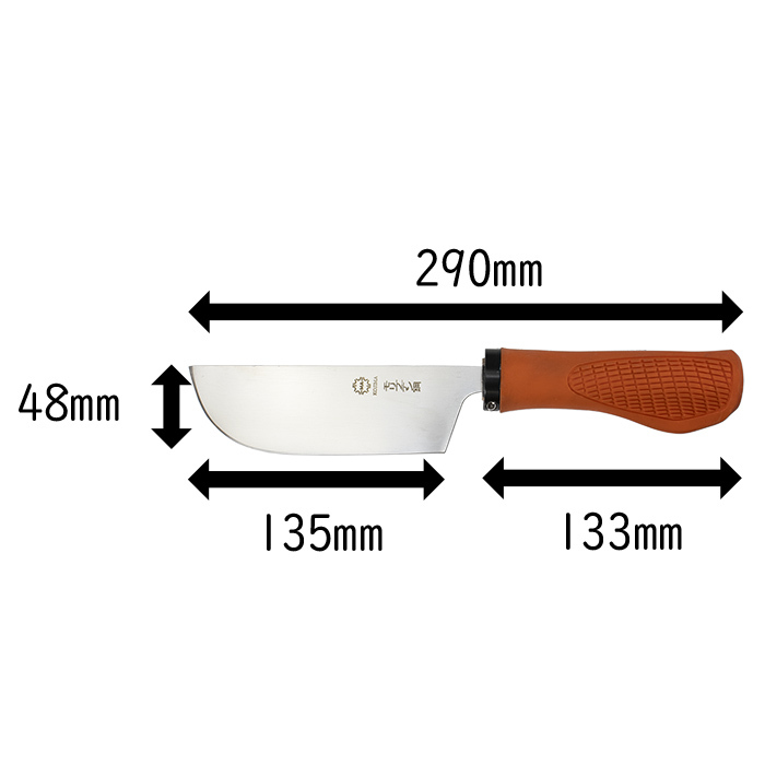 滑りにくいグリップ柄で使いやすい収穫包丁です。
