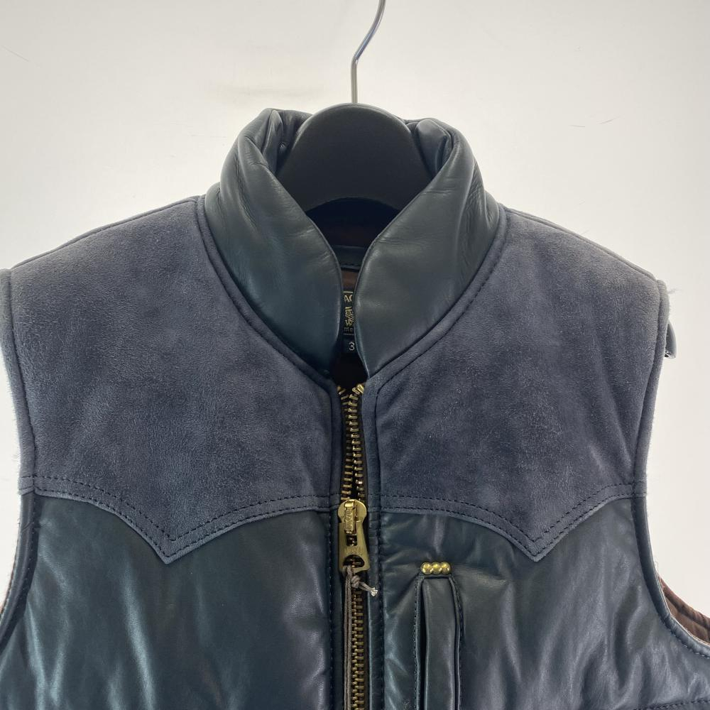 | 209999720384)Vin&Age LEATHER VEST TYPE VLJ2 サイズ38 ブラック×ネイビー |