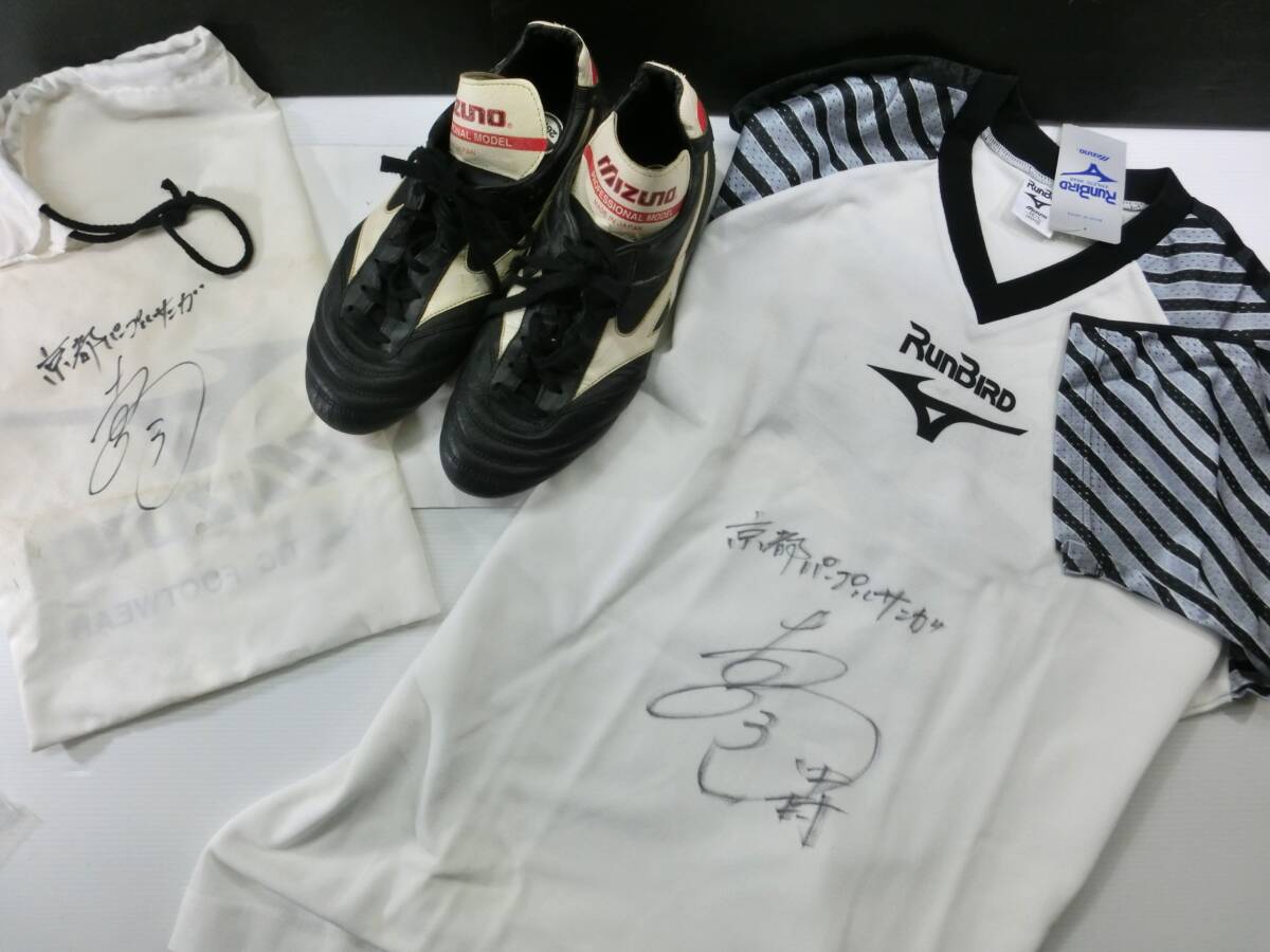 ミズノ製 京都パープルサンガ 直筆サイン入り◆#3 中村忠?『半袖 ユニフォーム /Oサイズ』『シューズ.スパイク』