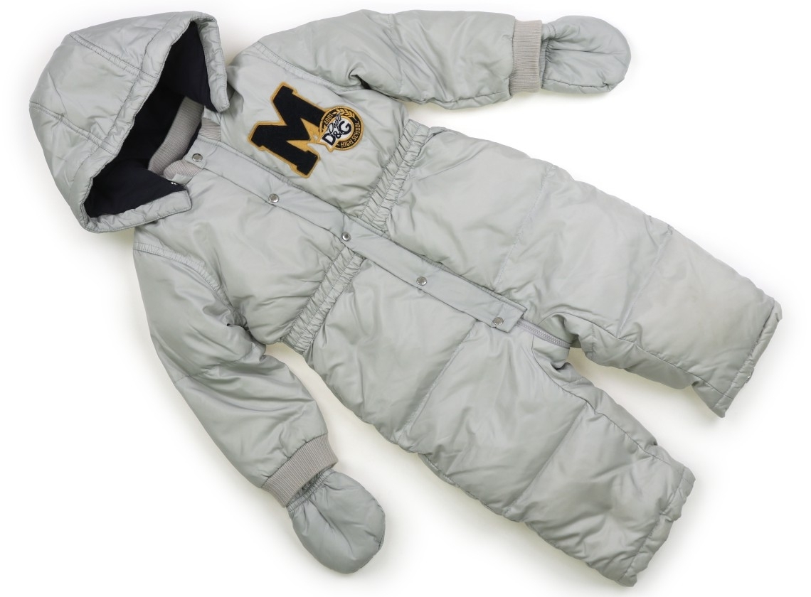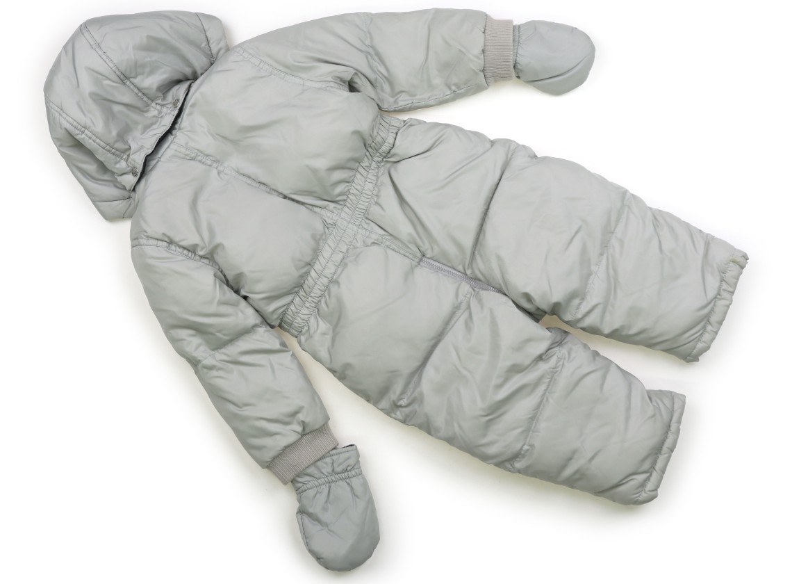 ナイロン素材。中綿ダウンフェザー。フードと手のカバーは取り外しが可能です。前ファスナー開き。フットカバーが欠損しています。ヒップに複数の傷あり。裏地に毛羽立ちあり。シミや汚れが多数見られ、使用感があります。