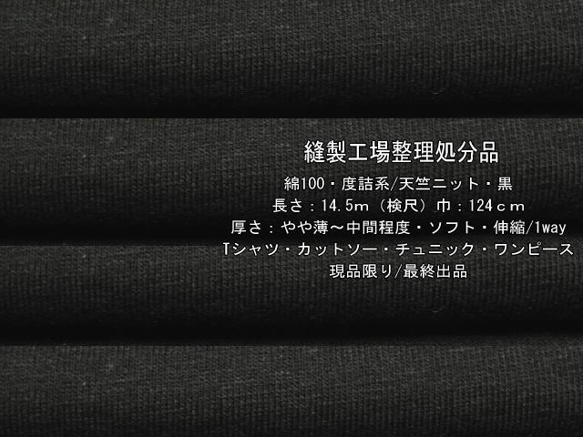| 綿100 度詰系/天竺ニット やや薄~中間 ソフト 黒 14.5m Tシャツ | |
