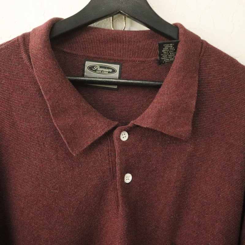 商品名 y513 2000年代製 Premium 長袖ニットポロシャツ■00s 表記XLサイズ ボルドー コットン アメカジ ストリート 古着 古着卸 激安 ヴィンテージ