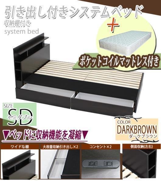 | 商品名 | 引き出し付きシステムベッド ポケットコイルマットレス付き セミダブル 茶 ダークブラウン ベッドフレーム 収納棚付き ロータイプベッド システムベッド すのこ ベッド フレーム 木製 引き出し コンセント付き 収納 収納ベッド 桐 lis29sdbrpoc |