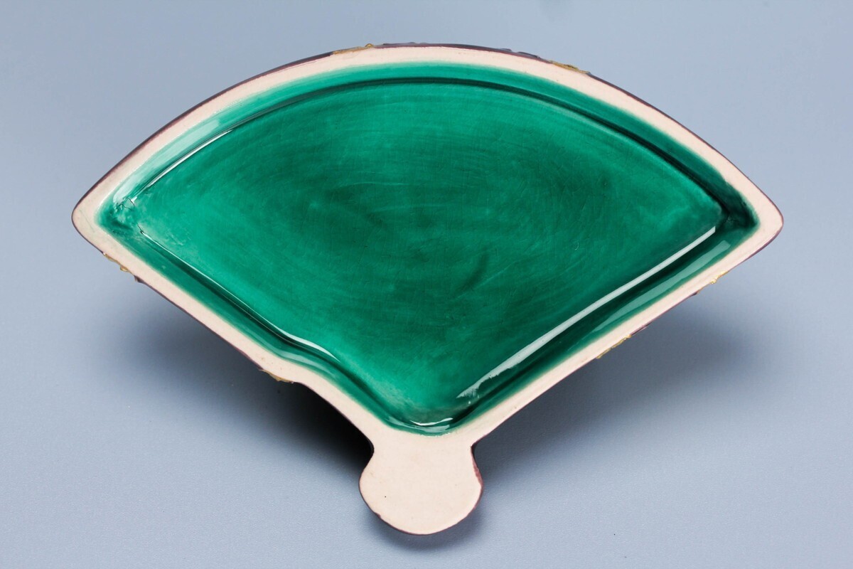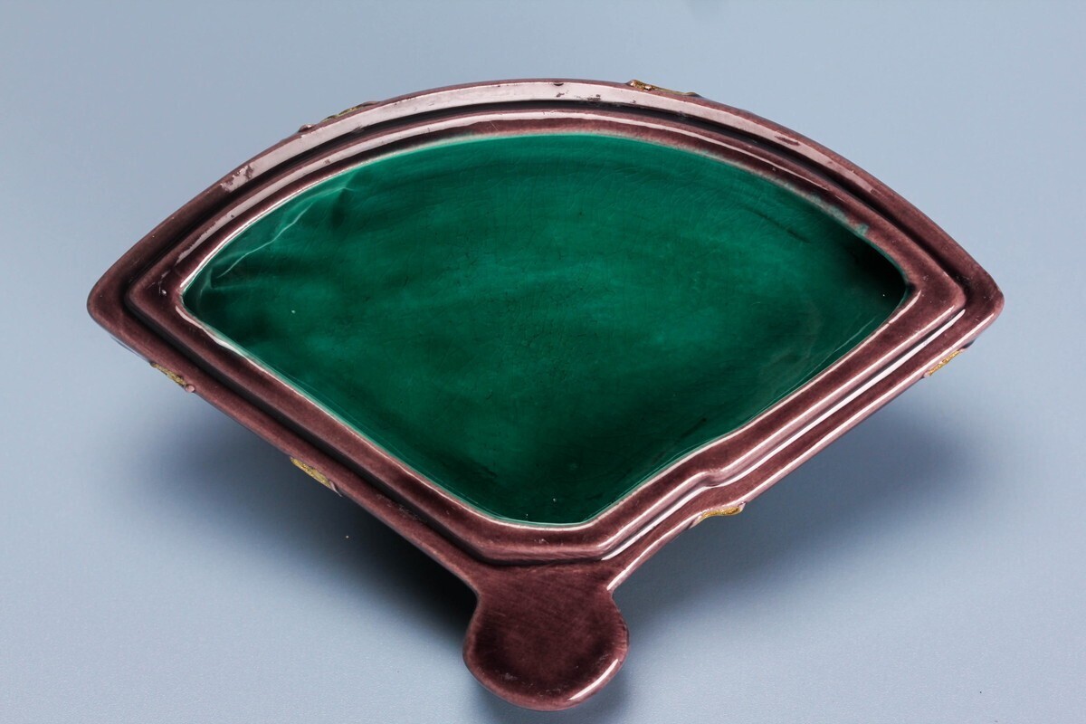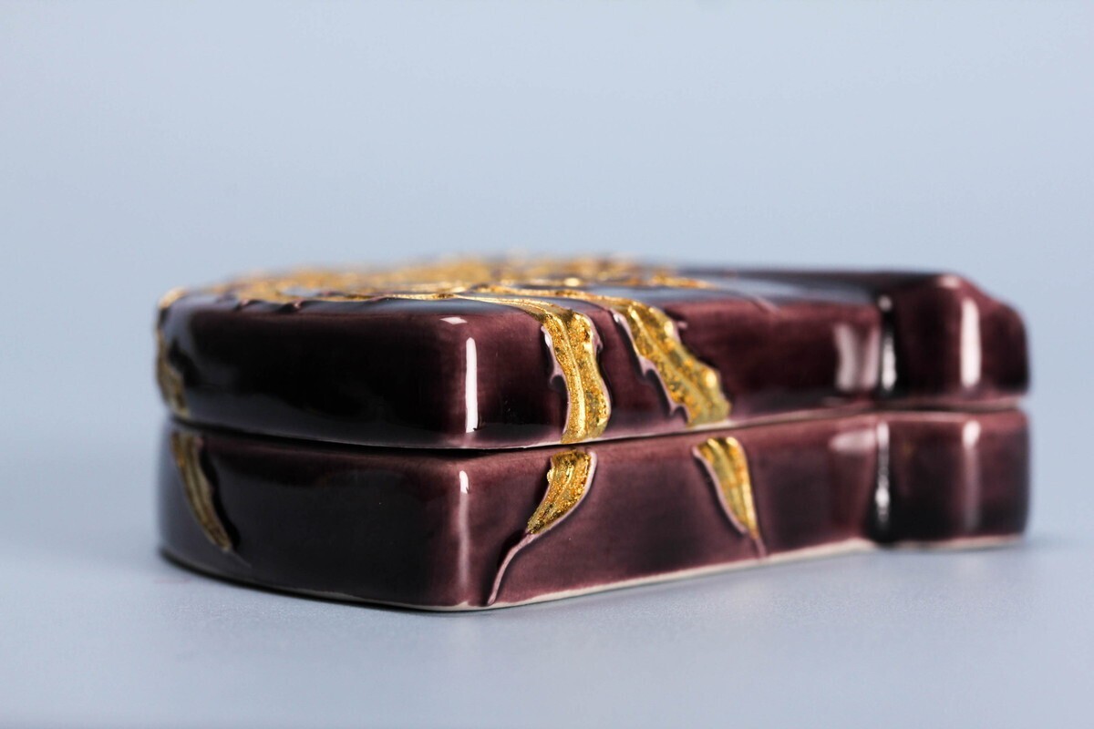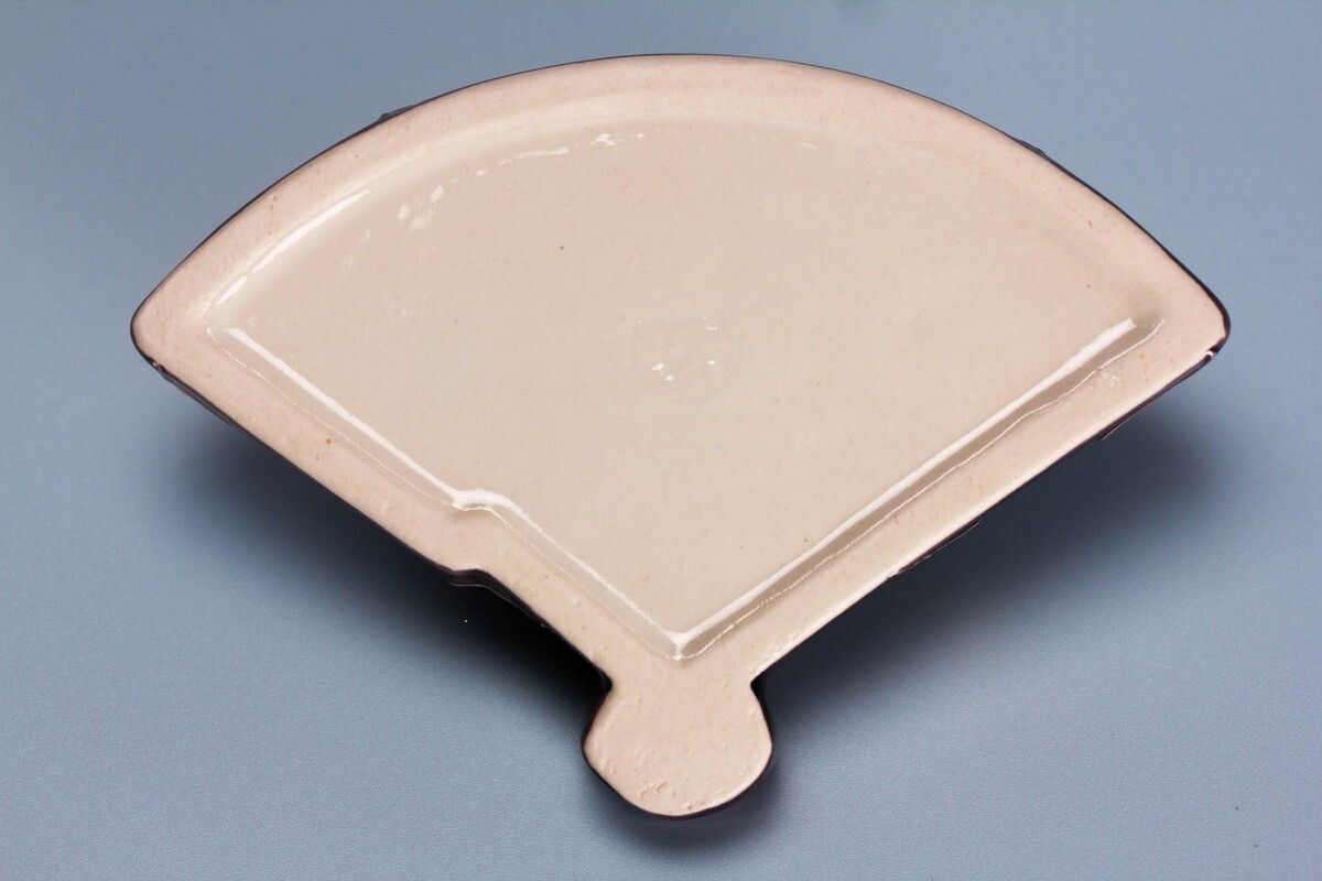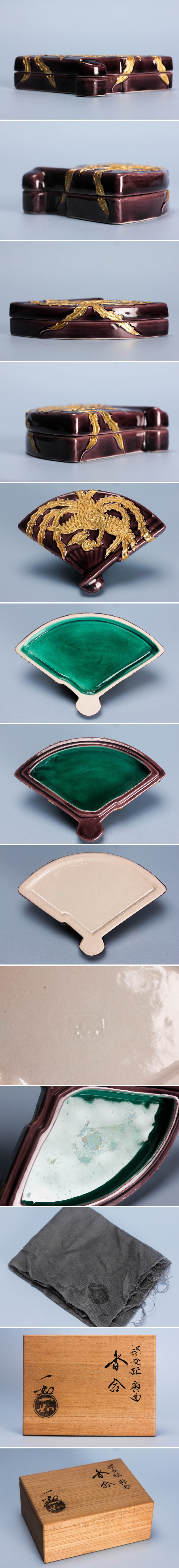 山本一如 紫交趾扇面香合 共箱 共布 茶道具 本物保証