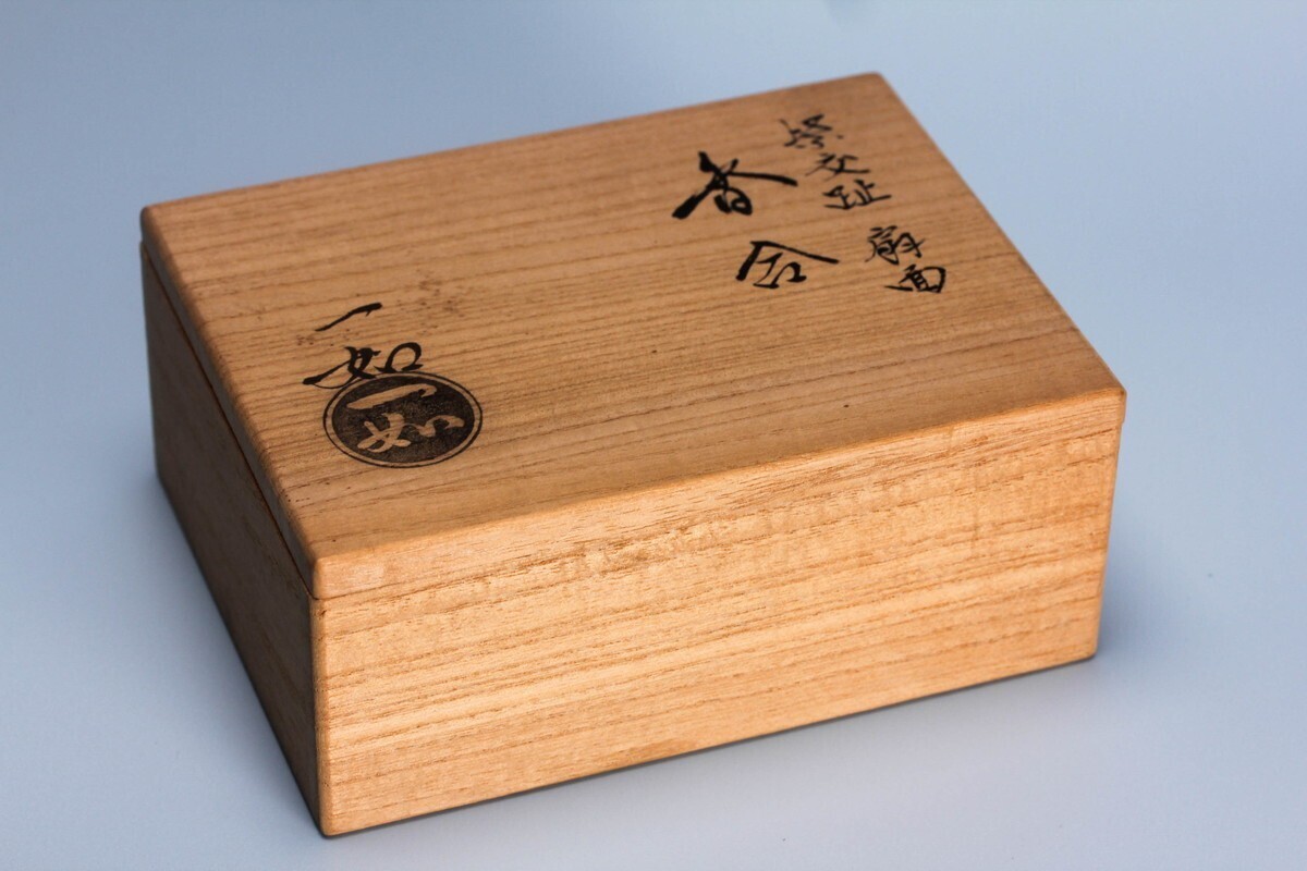 稀に他の作品名・作家名が書き付けられた木箱をお付けしております。誤認防止のため箱書き部分の画像を掲載しない場合もございます。