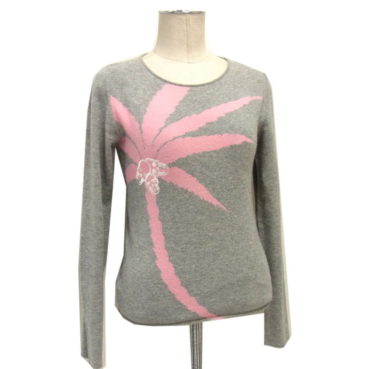 美品☆Lucien PellatiFinet カシミヤウール セーター ニット パームツリー スカル刺繍 英国製 レディース クルーネック