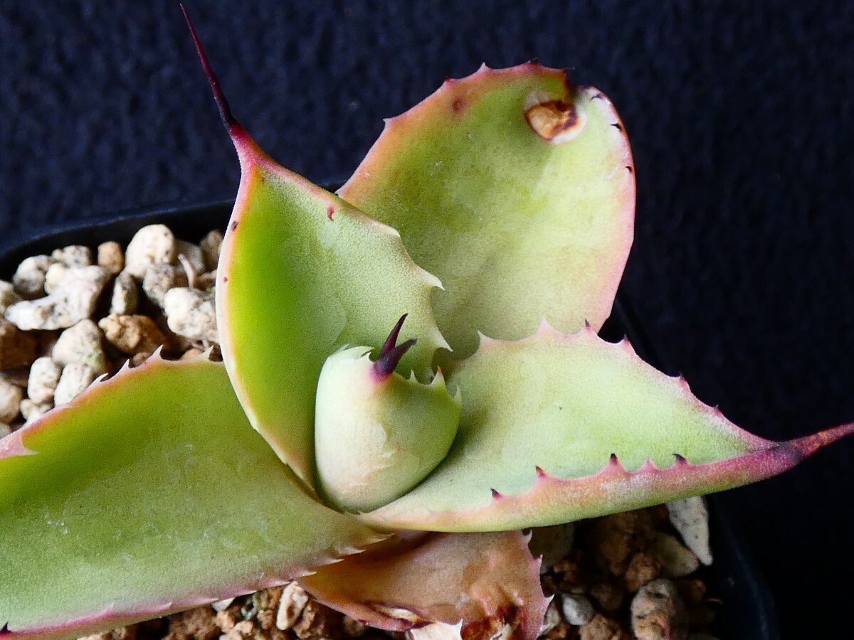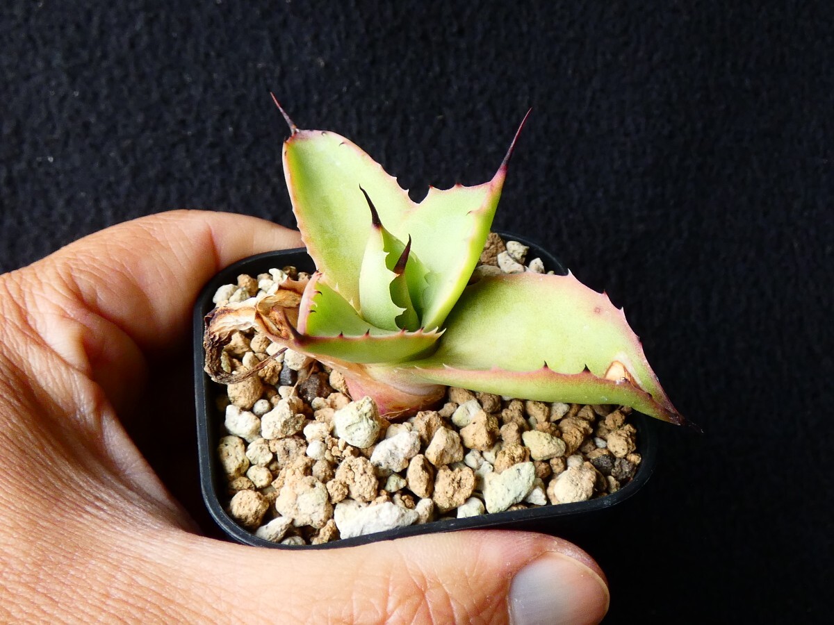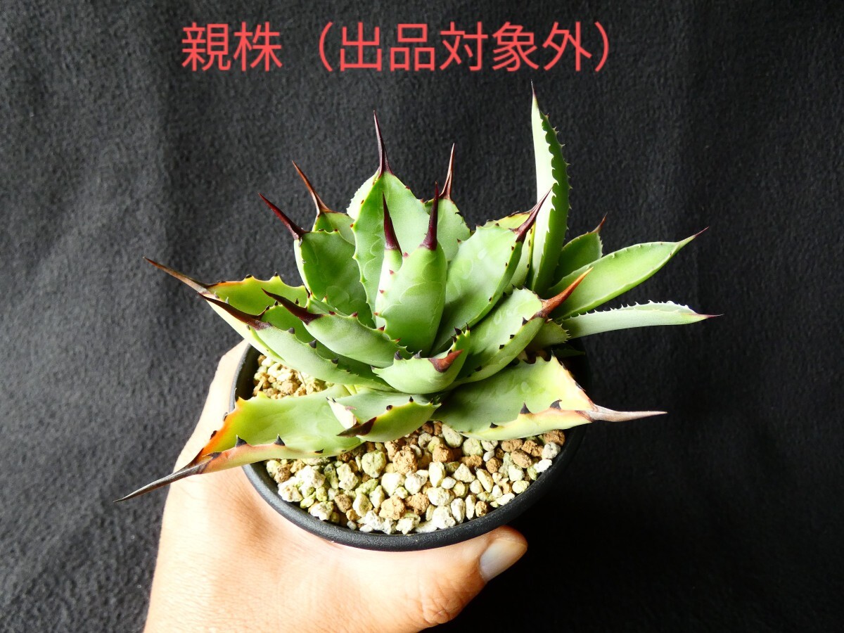 出品対象は写真4〜10枚目の子株一つです。成長後の容姿の参考として、直接の親株を写真1〜3枚目に掲載しますが、この親株は出品の対象外ですので、ご注意願います。