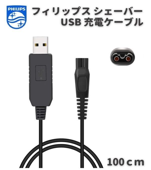 Philips フィリップス シェーバー 髭剃り用 USB 充電 互換 ケーブル コード 充電器 バリカンも対応 100cm E538