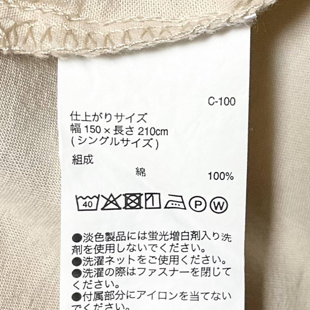 掛け布団カバー        筒胴タイプ  下部にファスナー     ボタンで留めるタイプ    無印の近年の仕様