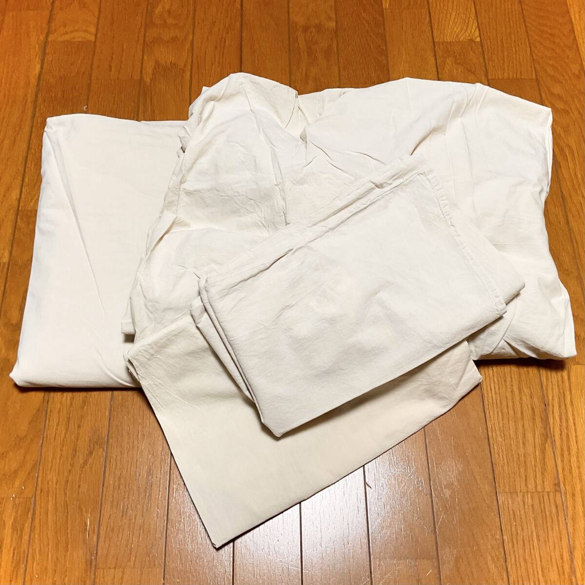 MUJI 無印良品 シーツセット ベージュ系 シングル 掛け布団カバー ボックスシーツ 枕カバー 綿100% ※ジャンク