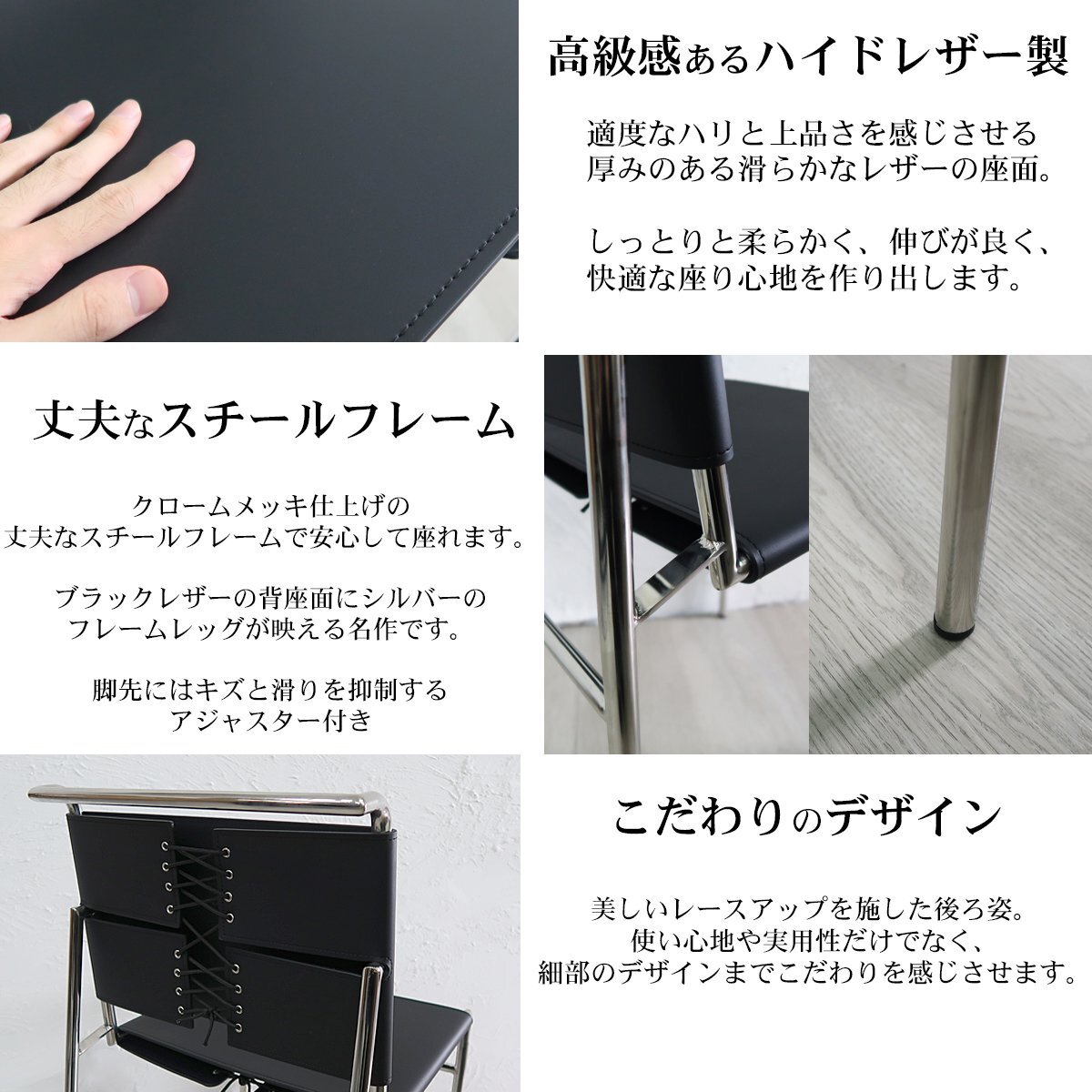 ダイニングチェア 北欧 一人掛け モダン 革張り ラウンジチェア レザーチェア ロクエブリューン デザイナーズチェア ホテルライク CH-04BK