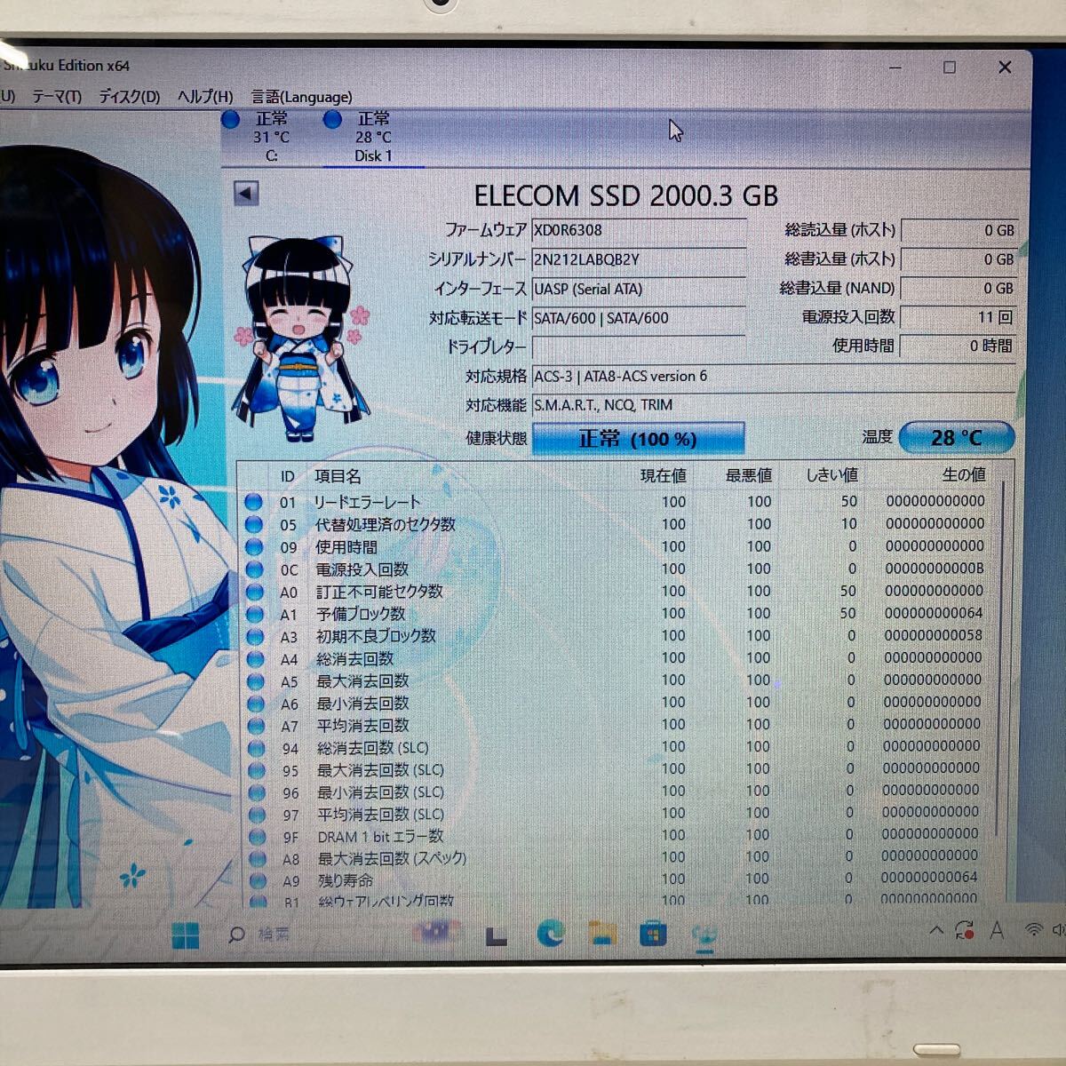 Crystaldiskinfoにて【正常】と判定されました。