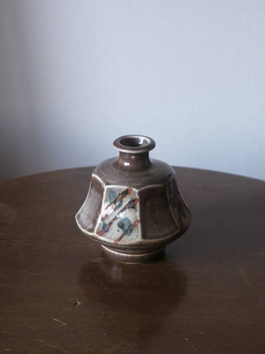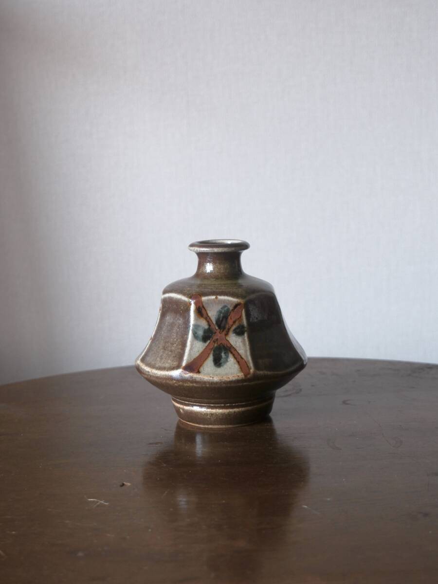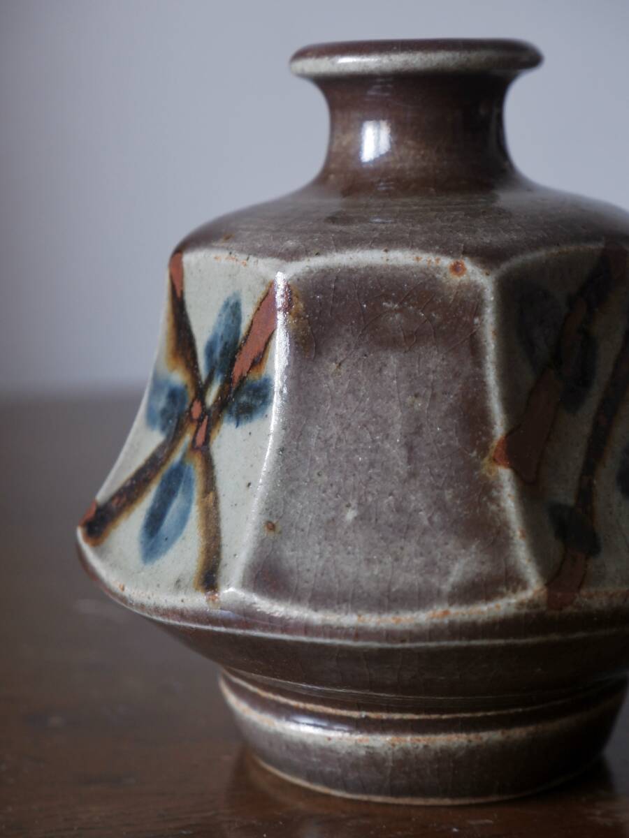 【青枠】河井寛次郎系 武一 呉須花瓶 花入 陶磁工芸 民藝品 古道具 時代物 美術品Q2009