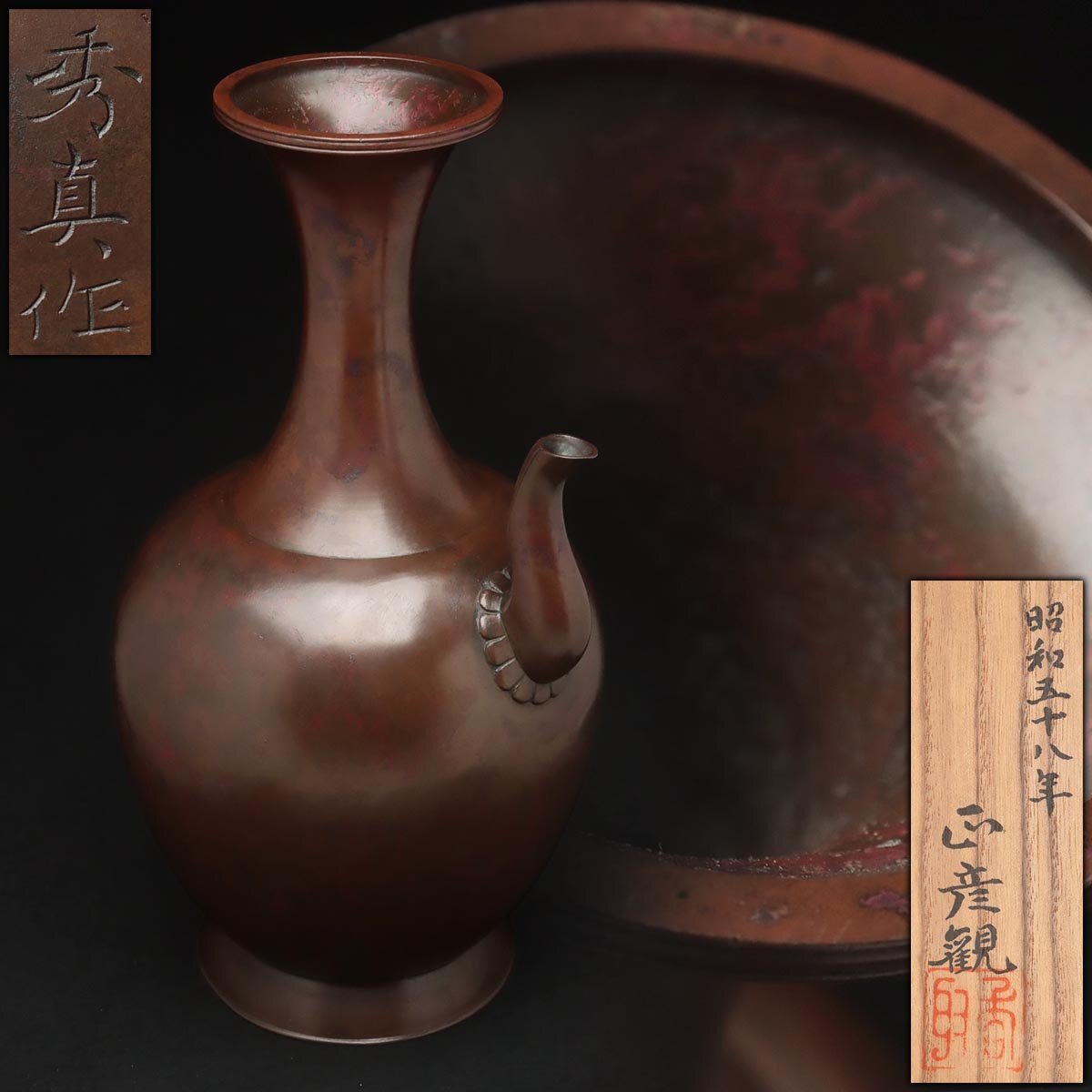 | ◆ 【帝室技芸員 香取秀真 作】斑紫銅 水瓶 高28.3cm 重2kg 香取正彦極め箱付・浄瓶 茶道具 寺院仏具 仏教美術 ◆