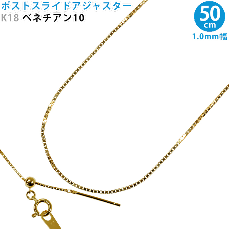 | 商品名 | K18 ネックレスチェーン 50cm ポストスライドアジャスター ベネチアン10 ※当店のスライドピンシリーズの中で一番太いチェーンになります。 |