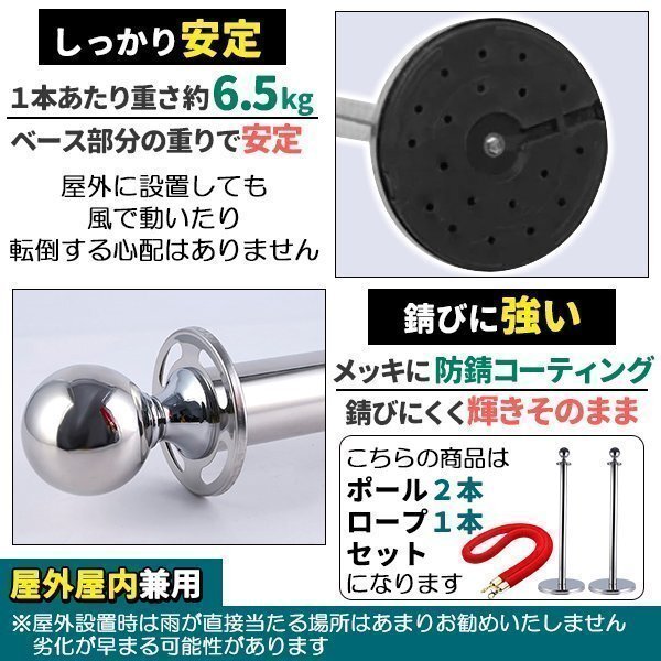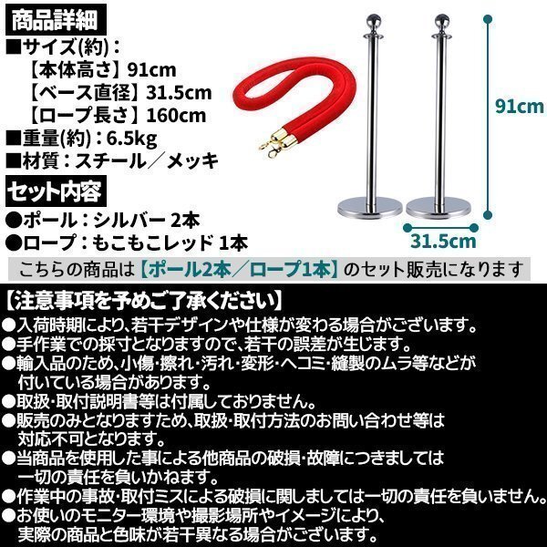 ポールパーテーション 2本 セット シルバーポール レッドロープ もこもこ ガイドポール ポール スタンド パーテーション 通路