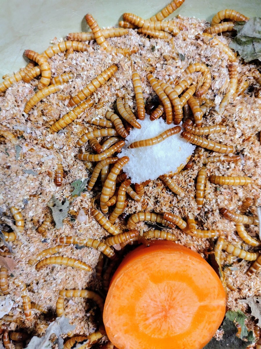 我が家の小鳥の為に購入したミルワームですが、増え過ぎて消費出来ません。プリップリッの生き餌です。
