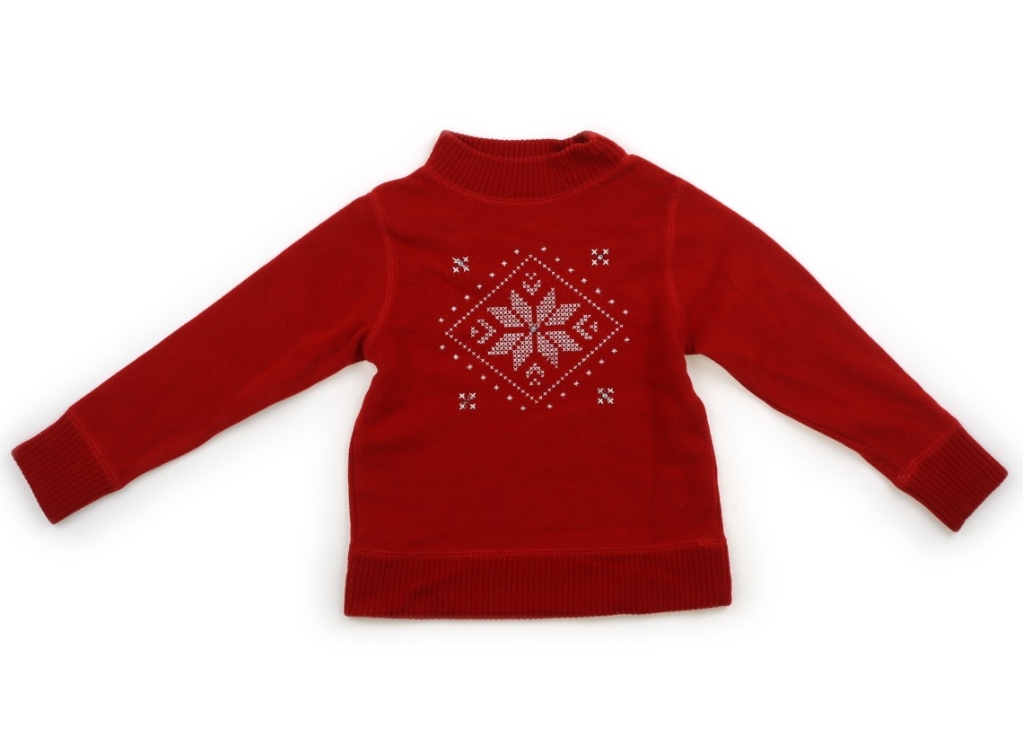 実際のサイズ表記はM(110-120)です。アクリル・ウールニット生地。胸の刺繍部分にやや糸のほつれがあり、襟や袖口などに毛玉がありますが、普段使いにいかがでしょうか。