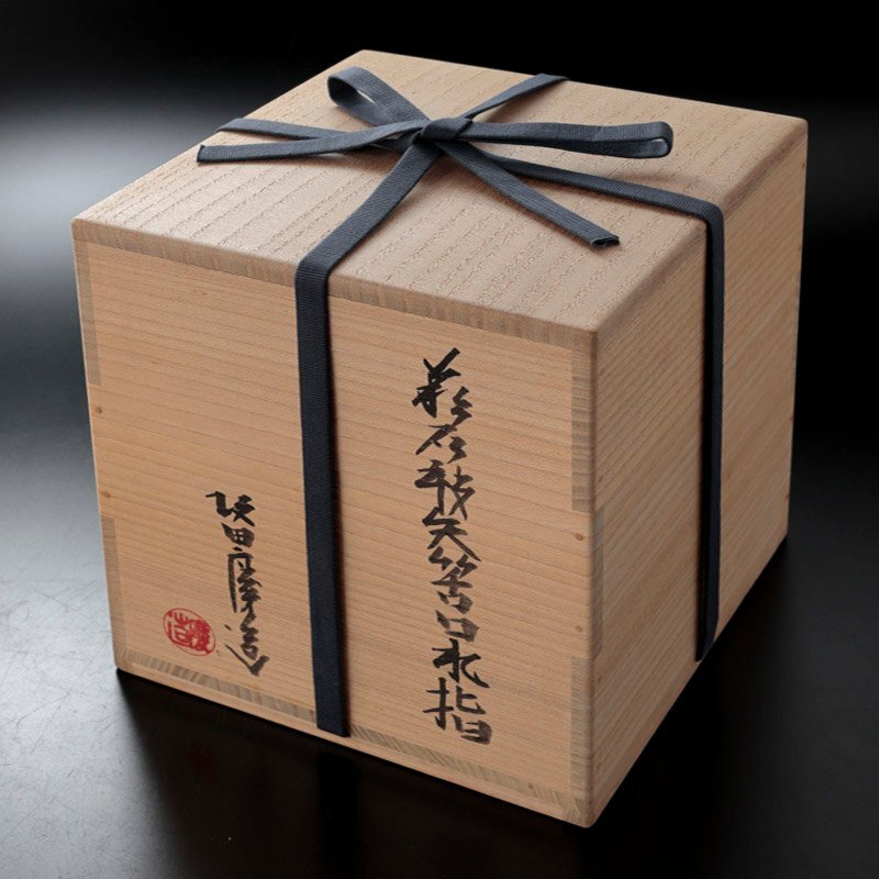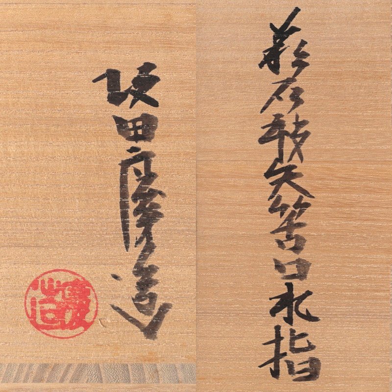 【坂田慶造】 13代坂田泥華を父に持ち、その技を受けると共に大学では彫刻を柳原義達に師事、卒業後、二年間の海外研修の後、父の下で本格的に陶芸活動を開始。1978年の第一回伝統工芸新作展初出品にて朝日新聞社奨励賞を受賞したことを皮切りに翌年には同二回展朝日新聞社賞、80年には同三回展NHK賞と連続受賞し同年日本伝統工芸展にも初入選して89年より日本工芸会正会員に就任、以降は日本伝統工芸展、日本工芸会山口支部展、田部美術館大賞展(茶の湯造形展)などで入選・入賞を数えるなど活躍を示し次期坂田泥華として更なる飛躍を嘱望されていたが2004年に54歳の若さで没す。尚、没後、贈り名として15代坂田泥華を襲名しており先代泥華は以降、泥珠の号で作陶を続けている。 |