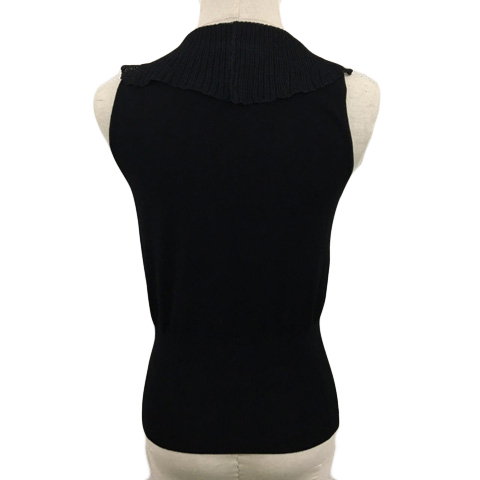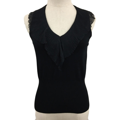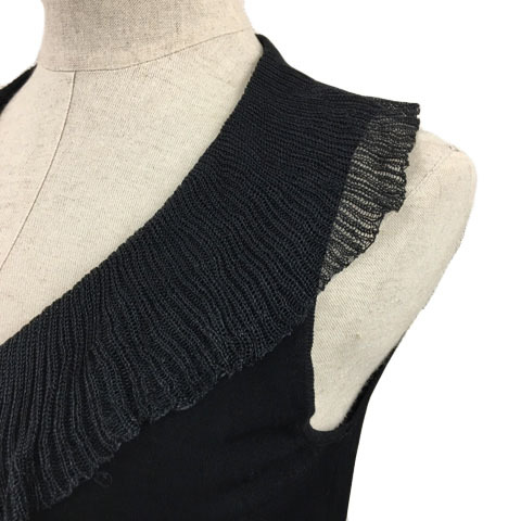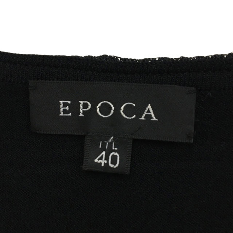 エポカ EPOCA カットソー ニット プルオーバー Vネック レース フリル 無地 ノースリーブ 40 黒 ブラック レディース