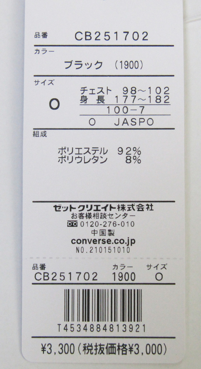 CONVERSE コンバース CB251702 バスケットボール サポートインナーシャツ ブラック O