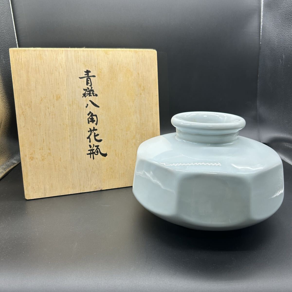 青磁 八角 花瓶 小 花器 花入 壷 壺 陶器 フ6